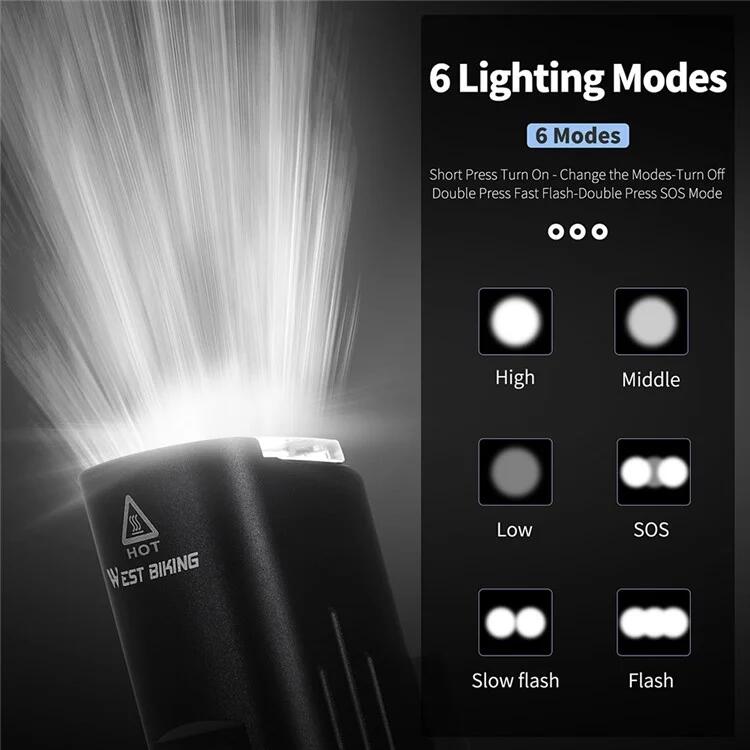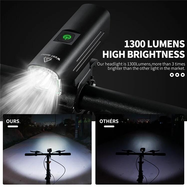 1300LM Mountain Bike Headlight, Rechargeable USB Flashlight