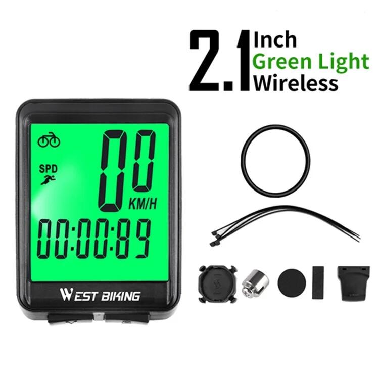 WEST BIKING Wireless Road Bike Computer with Backlit Display and Waterproof Speedometer - Green Backlight - Large digital display for easy data viewing - White/green backlit design for worry-free night riding - Multifunctional design to meet your needs - Waterproof design, no need to worry about bad weather - Ideal assistant for cycling training