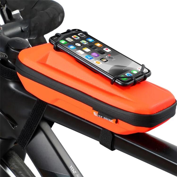 A waterproof bicycle handlebar bag with a holder for your phone.