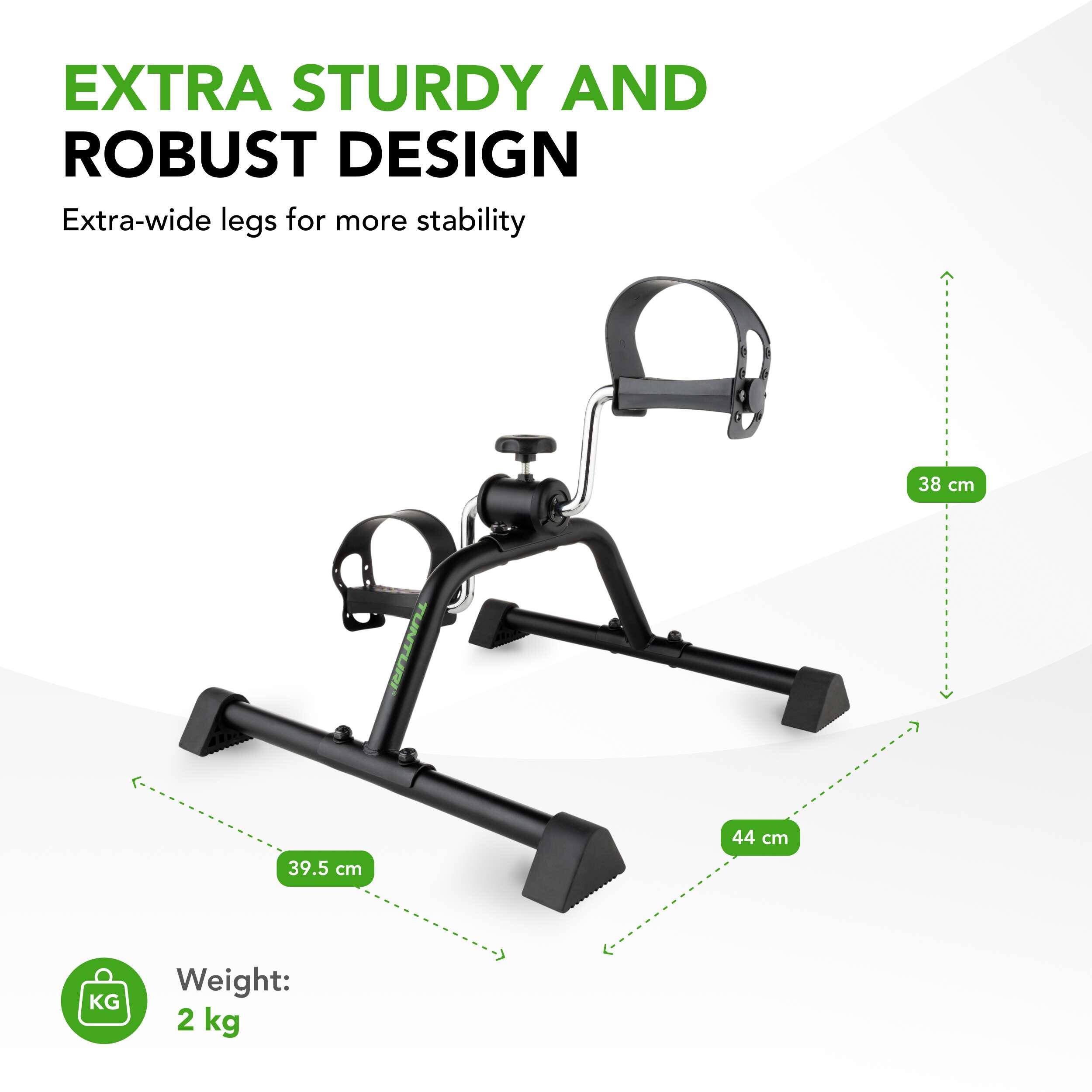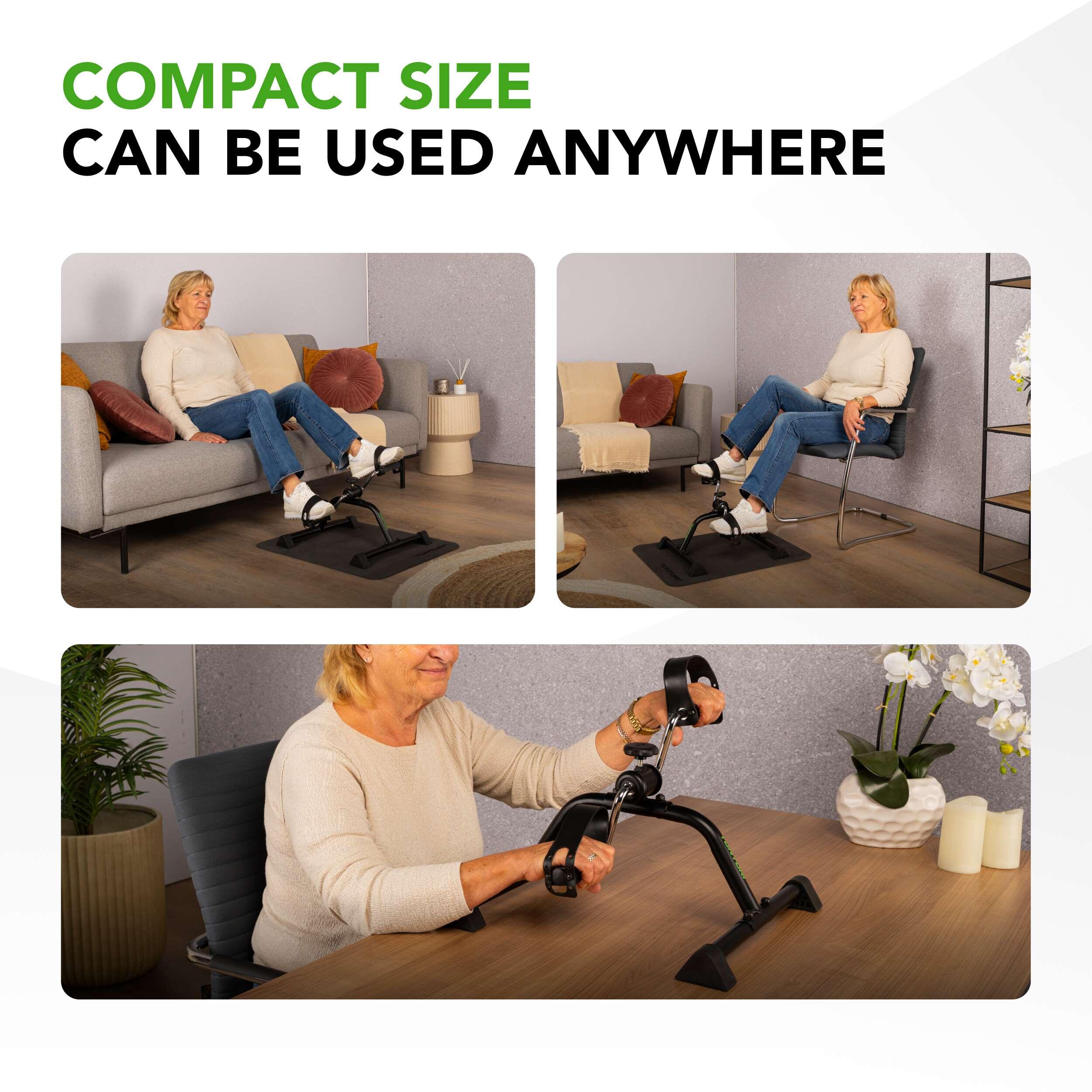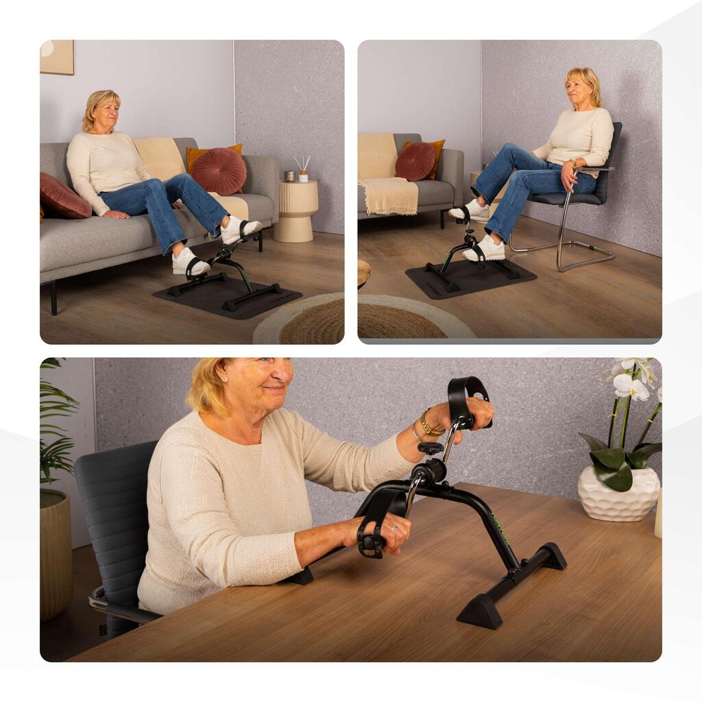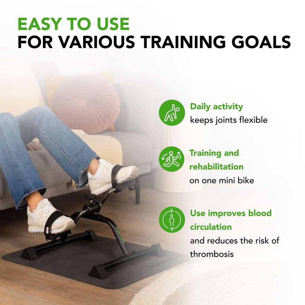 Stay active while sitting with the Tunturi Mini Bike: quiet, compact, adjustable resistance, and safe for arms and legs – ideal at home, in the office, or during rehabilitation.