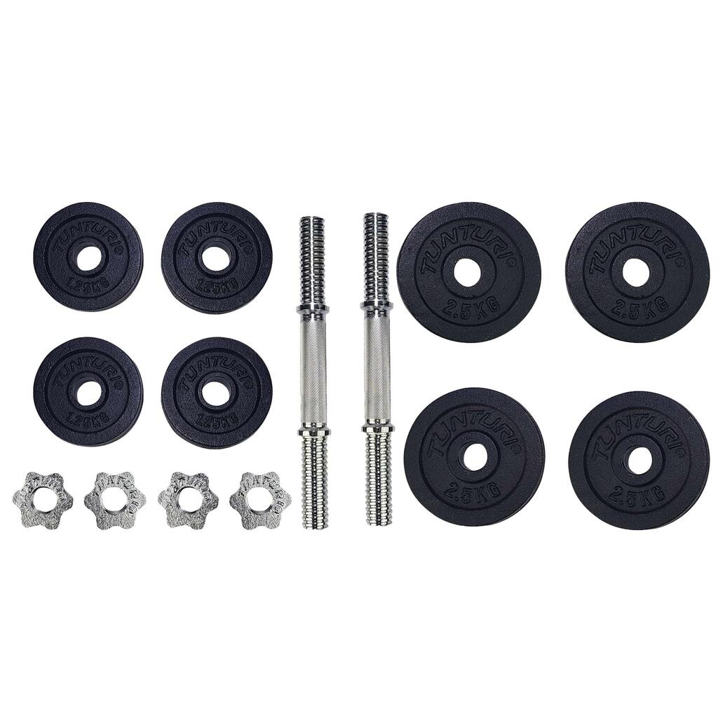 Dumbbells Cast Iron Total 20kg - Dumbbell Set with Screw Lock - 2 Barbell Bars -