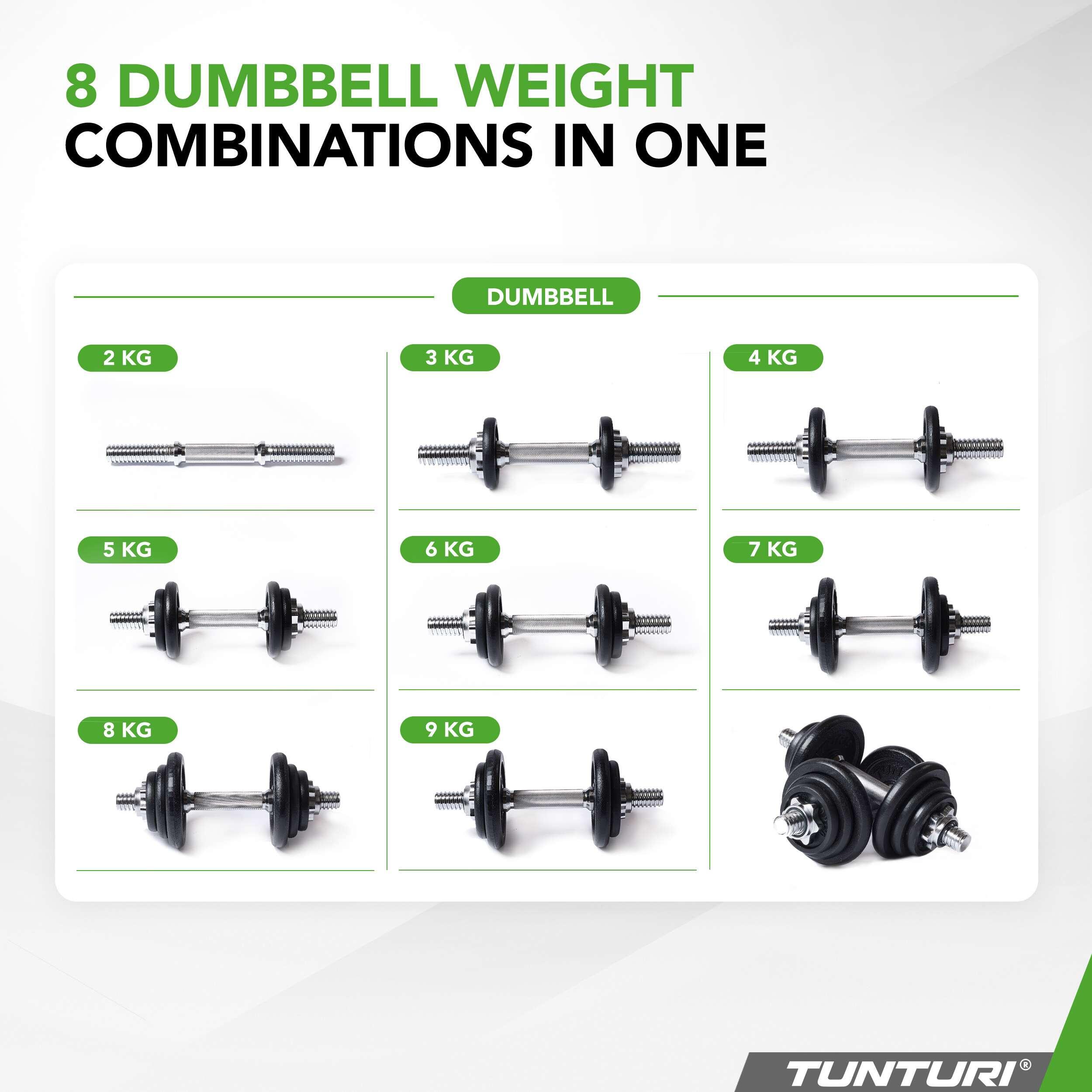 **Maximise the efficiency of your workouts with the Tunturi dumbbell set.**