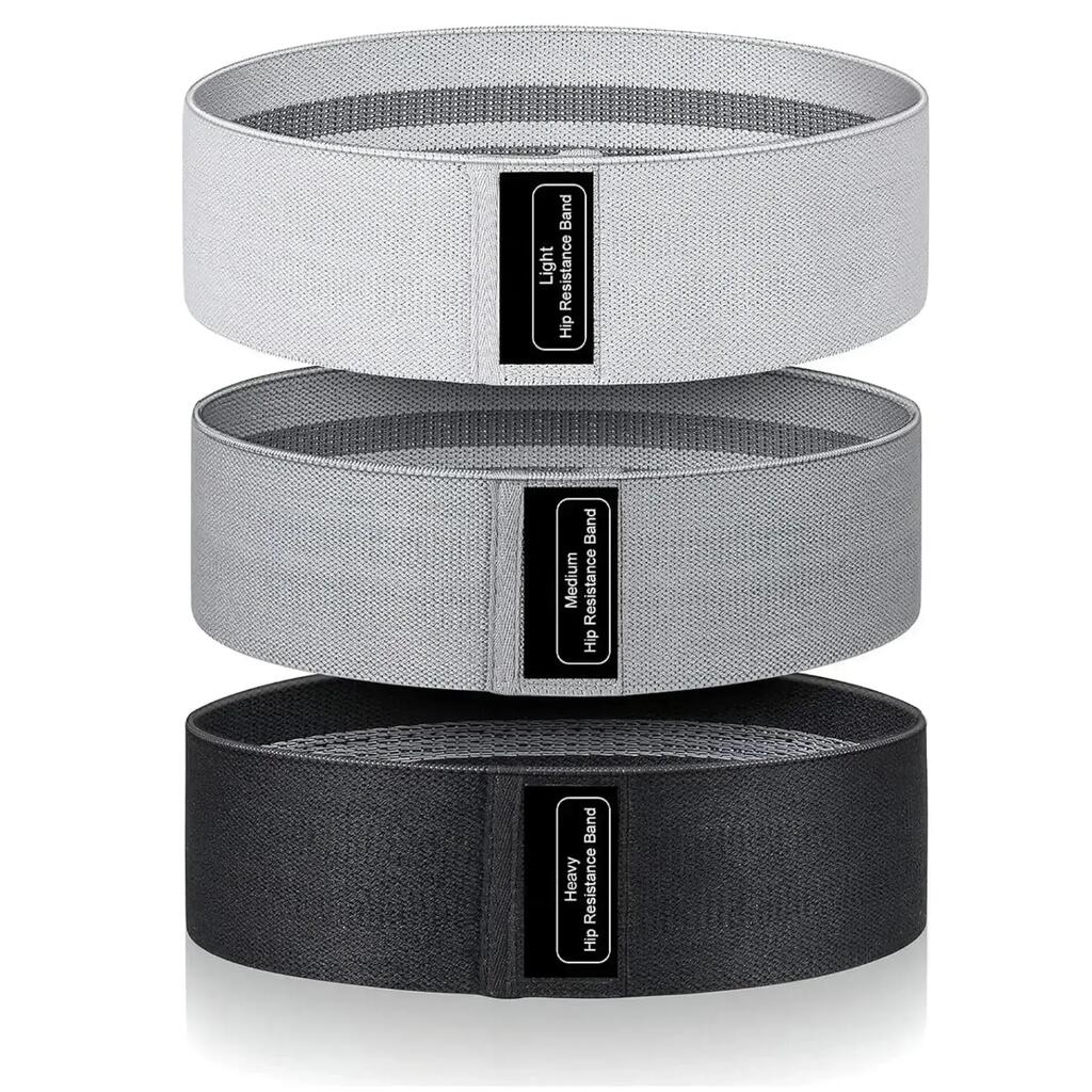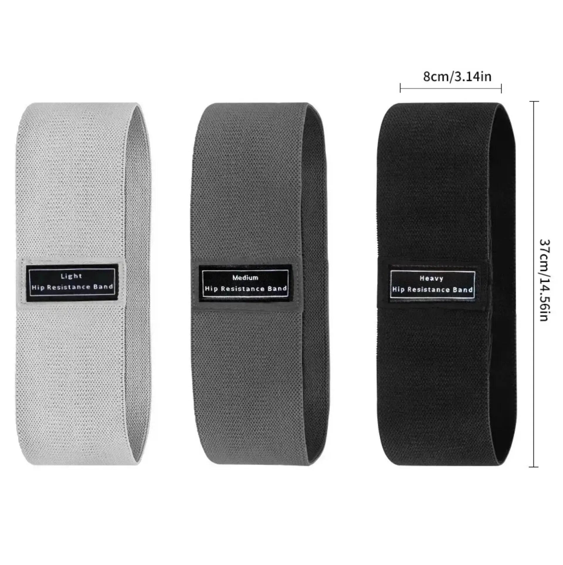 **Set of 3 fabric resistance bands for glutes, legs and full lower-body training.**