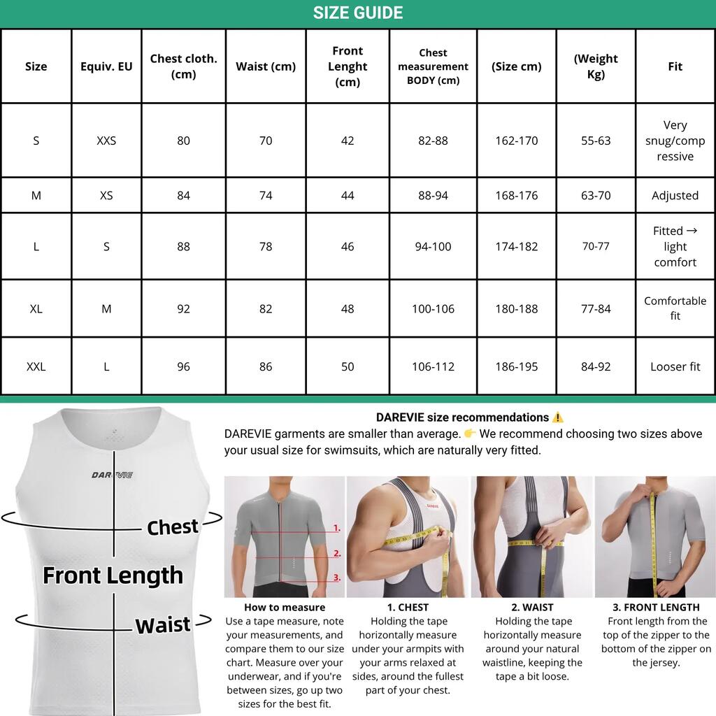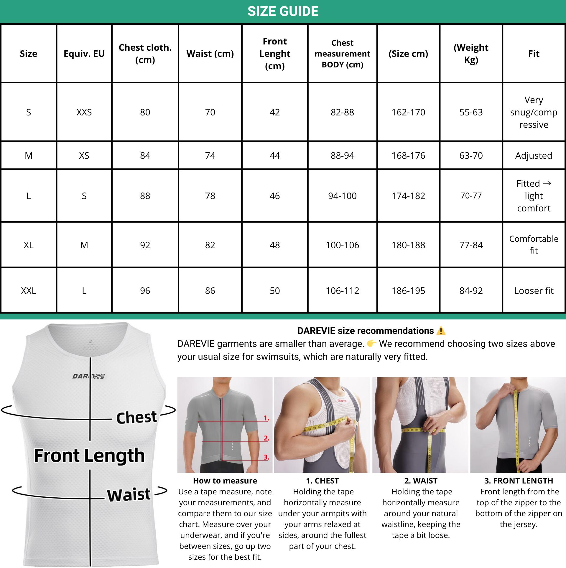 **Size guide β DAREVIE Airgrid Mesh base layer**