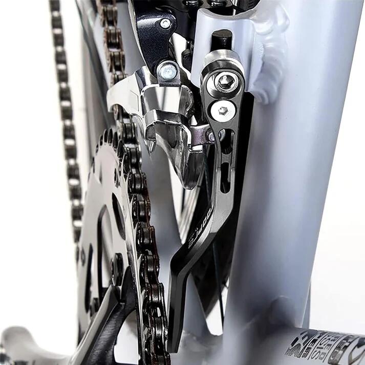 **Lightweight CNC aluminium chain guide designed to prevent chain drops on road bikes.**