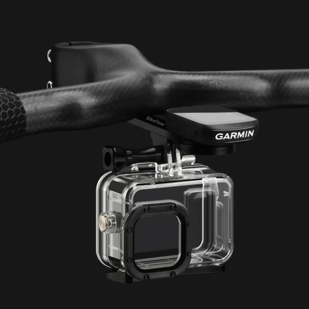 Designed for aero handlebars, it secures your Garmin computer and an extra accessory underneath.