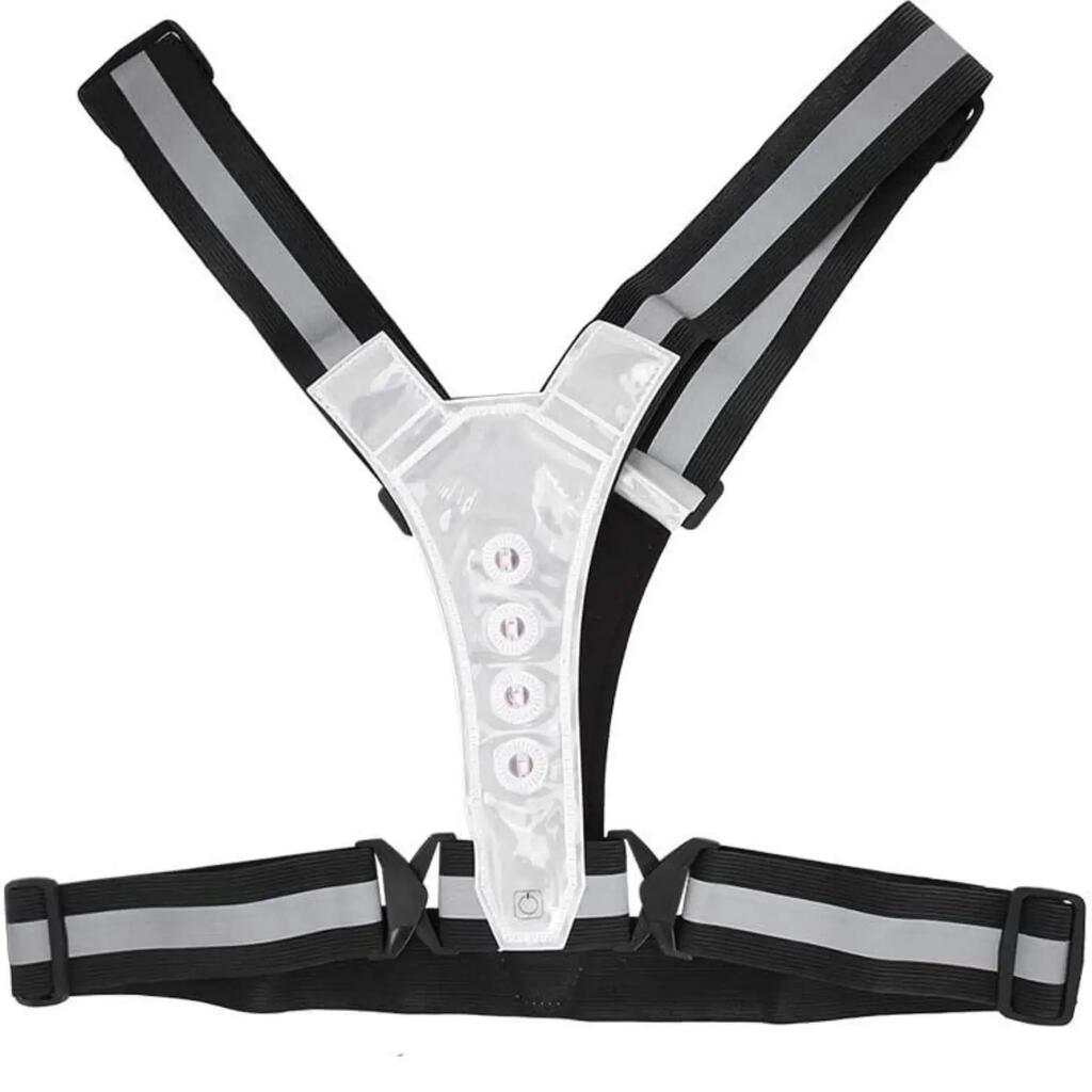 Stay safe and visible up to 200 m with this 360° LED reflective vest. Lightweight, waterproof (IPX6) and adjustable – ideal for running, cycling or walking at night.