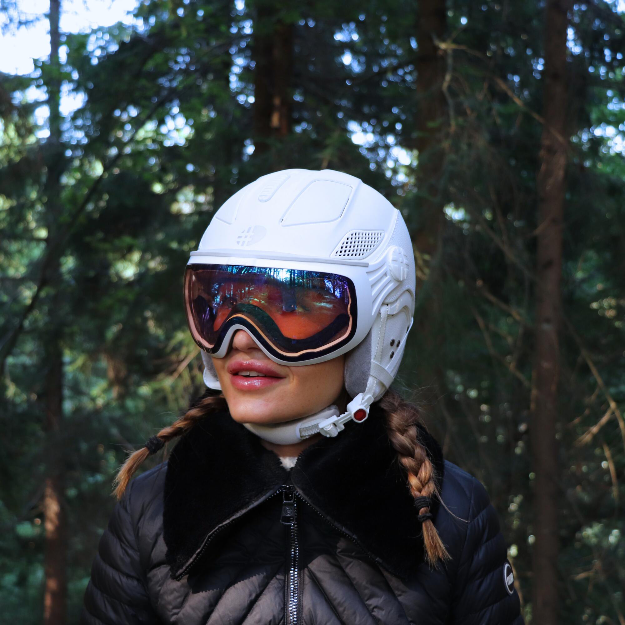 Ski helmet Louna II Edition DIEZZ – A perfect blend of style and performance with hybrid ABS/EPS construction and leather finishes. ActivLux 1-3 photochromic visor. Made in Italy.