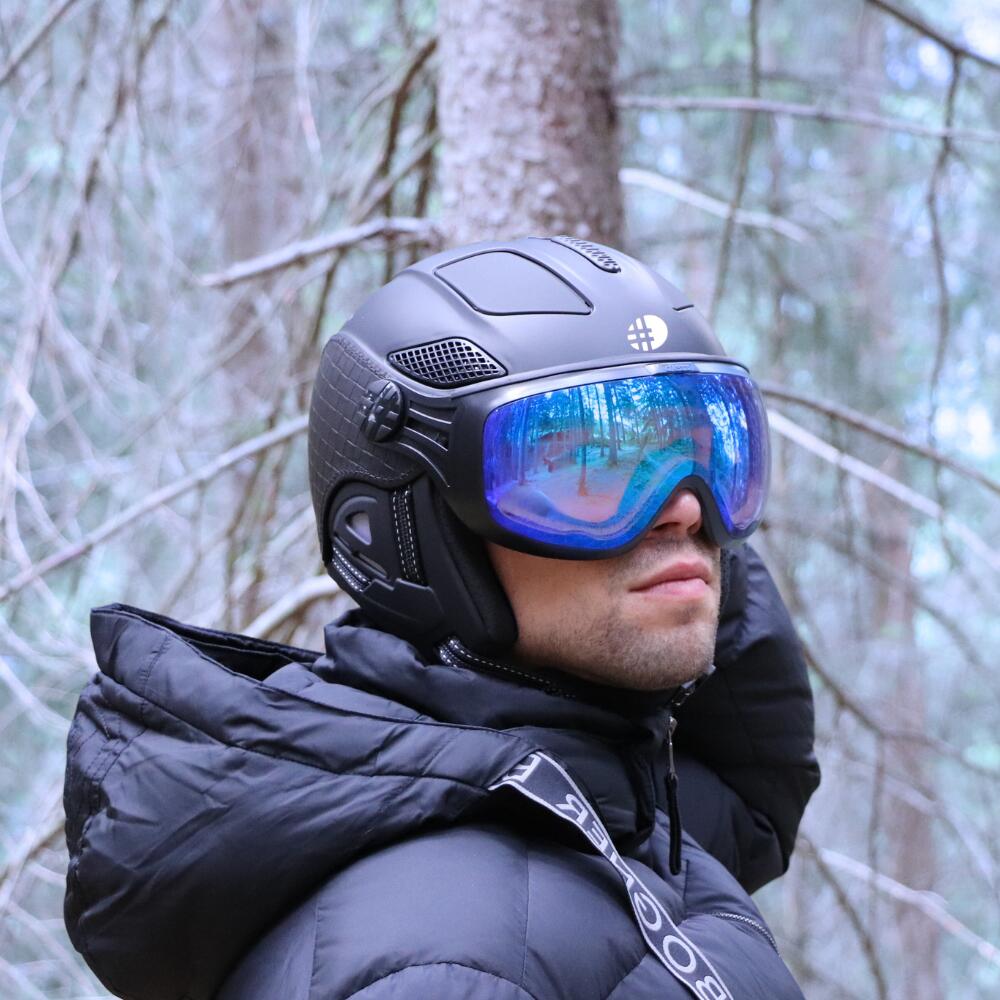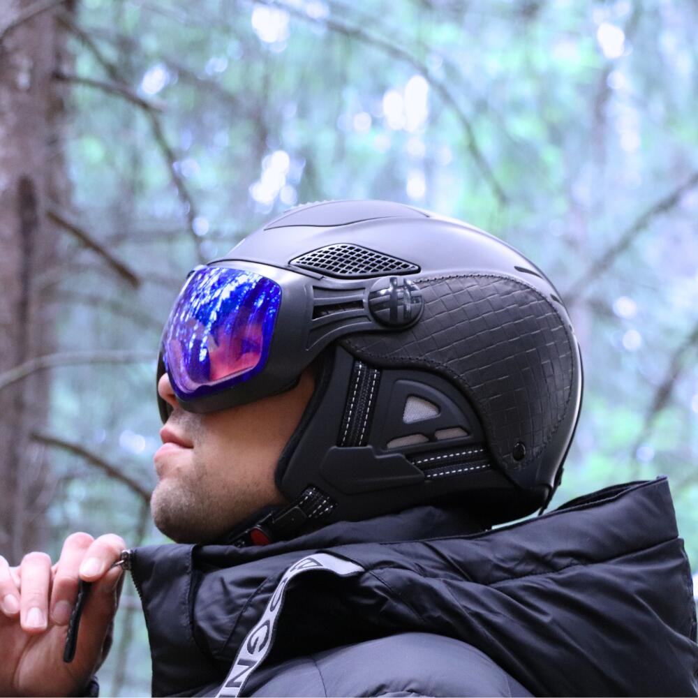 Ski helmet LOUNA Fashion DIEZZ – The perfect blend of innovation and style with hybrid design and semi-rigid earpads. Leather details for a unique elegance. Photochromic visor.