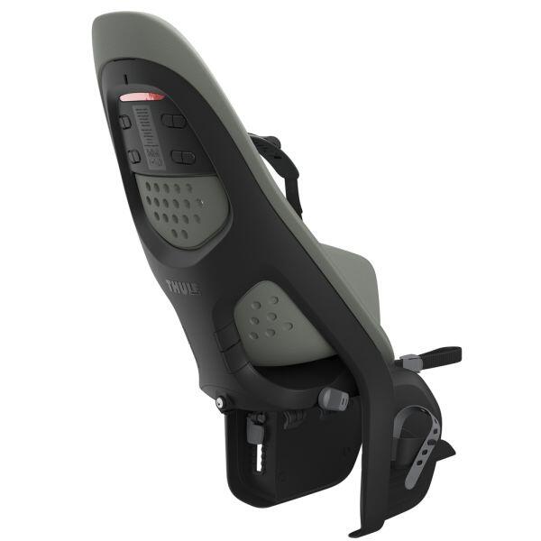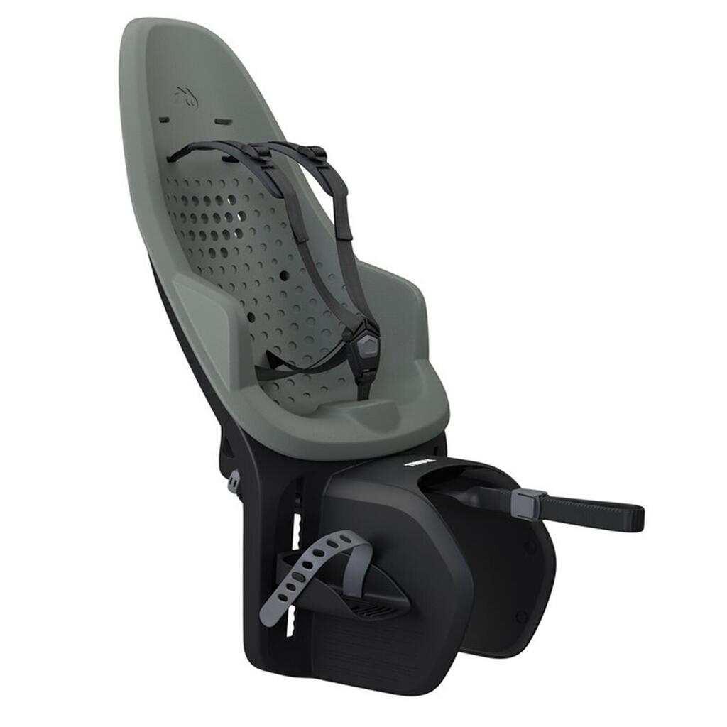 Rear-mounted child bike seat for 9 months to 6 years (up to 22 kg), offering comfort, adjustable 5-point harness and universal rack-mount.