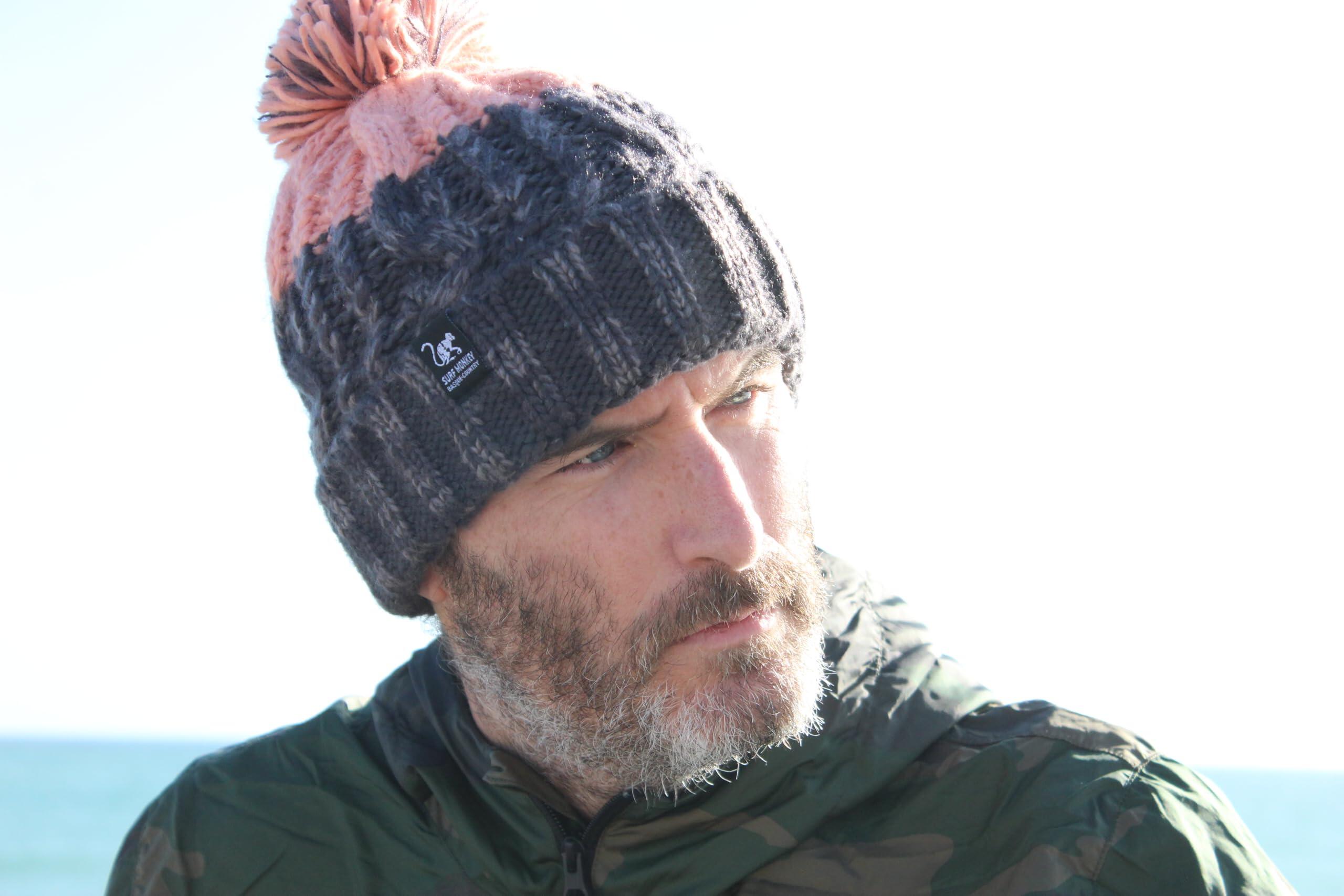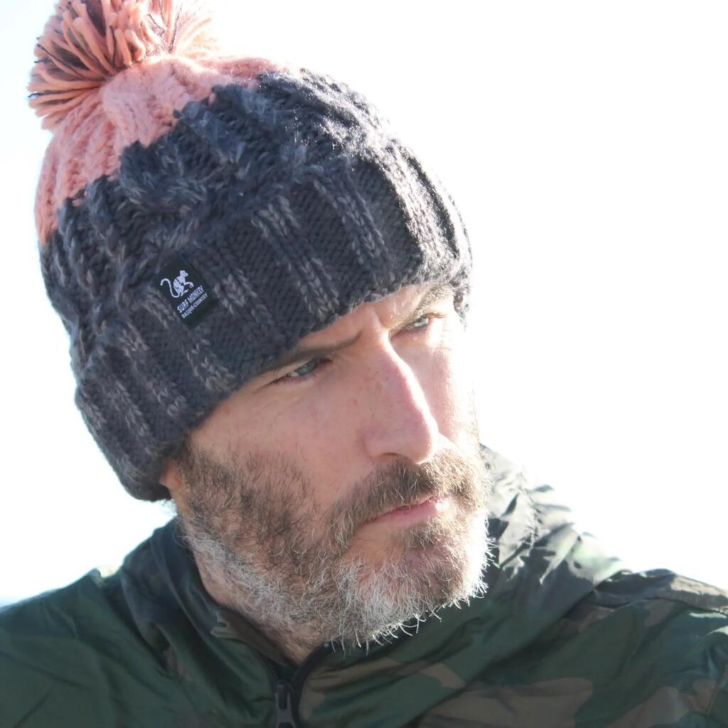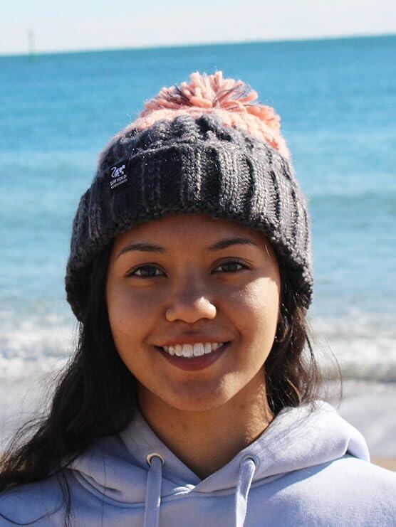 Pompom Hat - One Size - Inner Lining - Unisex (Grey/Pink)