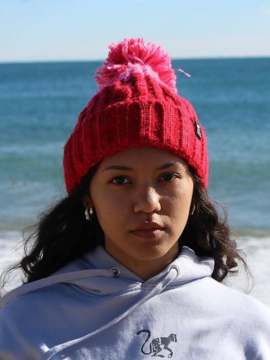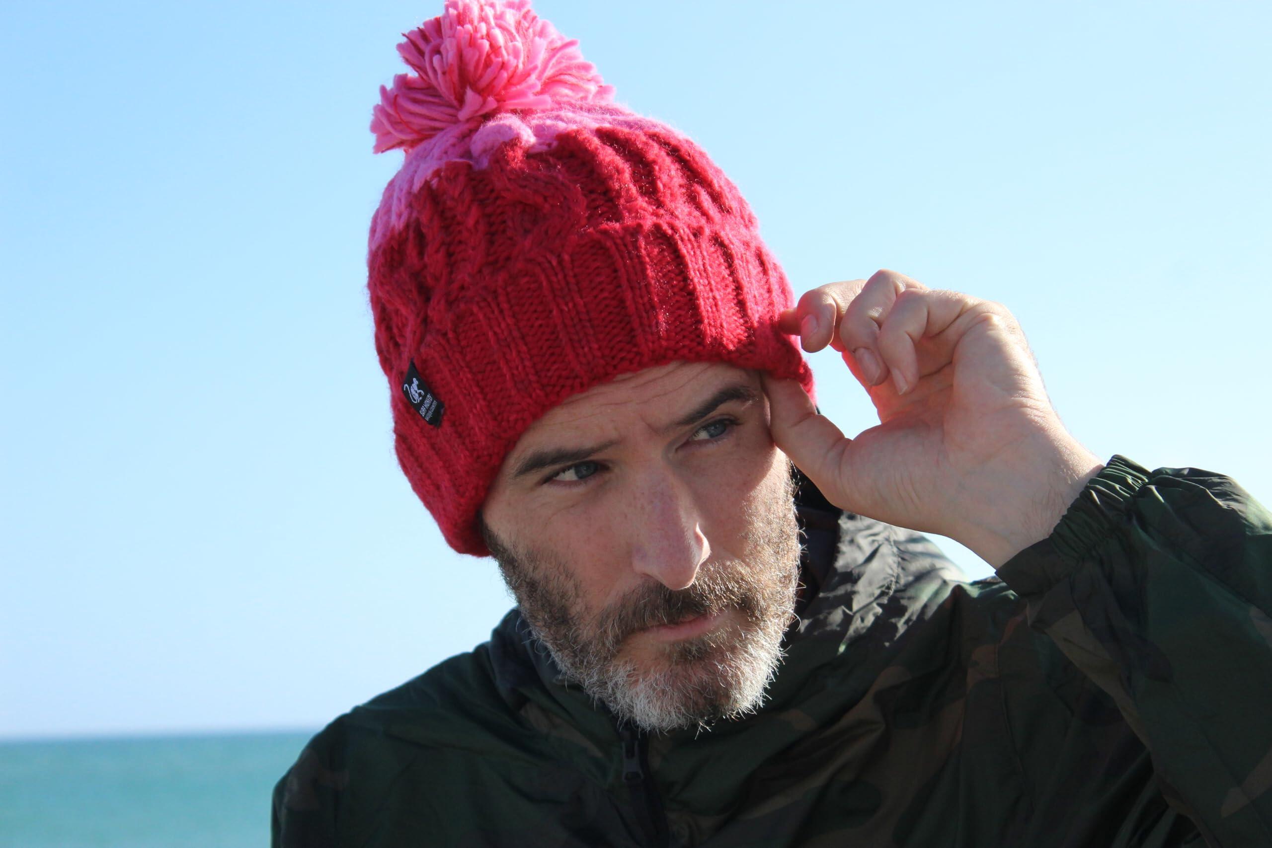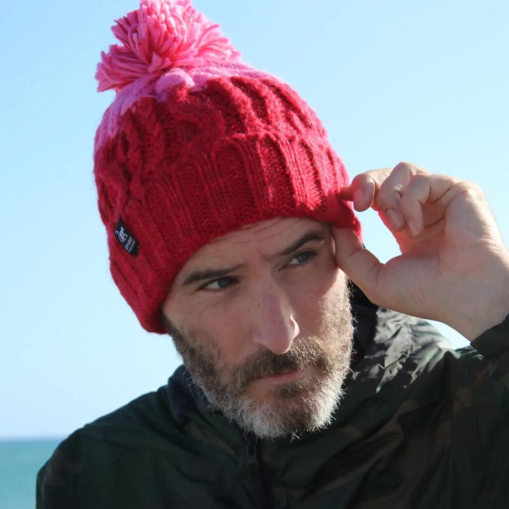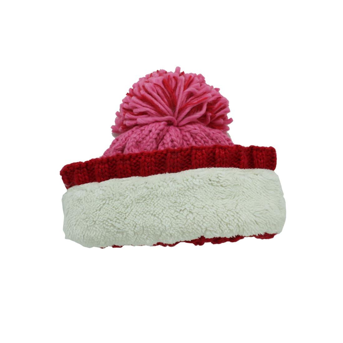 Pompom Hat - One Size - Inner Lining - Unisex (Red/Pink)