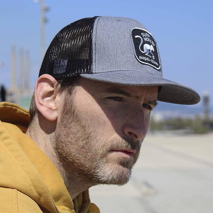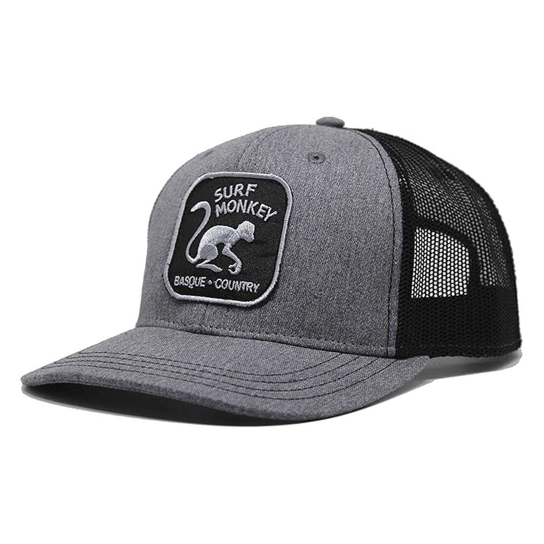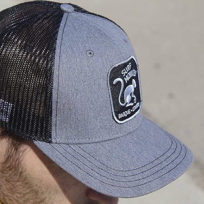 6-panel trucker cap, snapback adjuster, cotton and polyester. Sweat-absorbing bands and hand-stitched Surf Monkey® patch. Ideal for streetwear and daily use. Hand wash and ventilate.