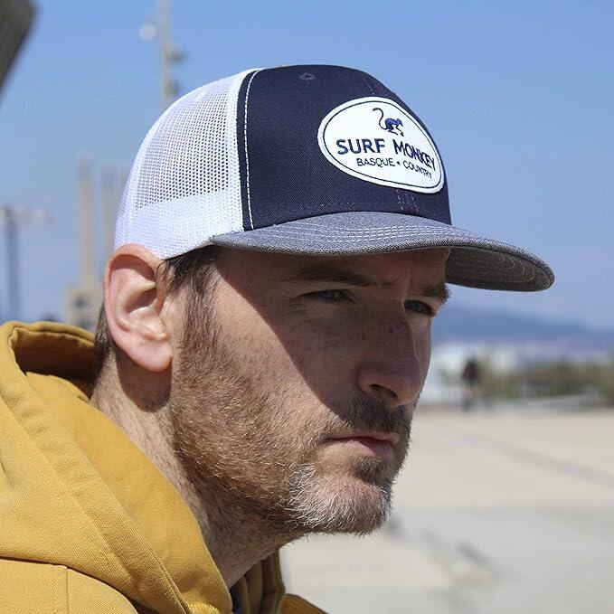 6-panel trucker cap, snapback adjuster, cotton and polyester. Sweat-absorbing bands and hand-stitched Surf Monkey® patch. Ideal for streetwear and daily use. Hand wash and ventilate.