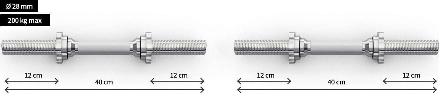 Zipro Dumbbell Bars 40 cm Ø28 mm – set of 2 chrome steel bars, max load 200 kg. Durable, safe and versatile for home workouts.