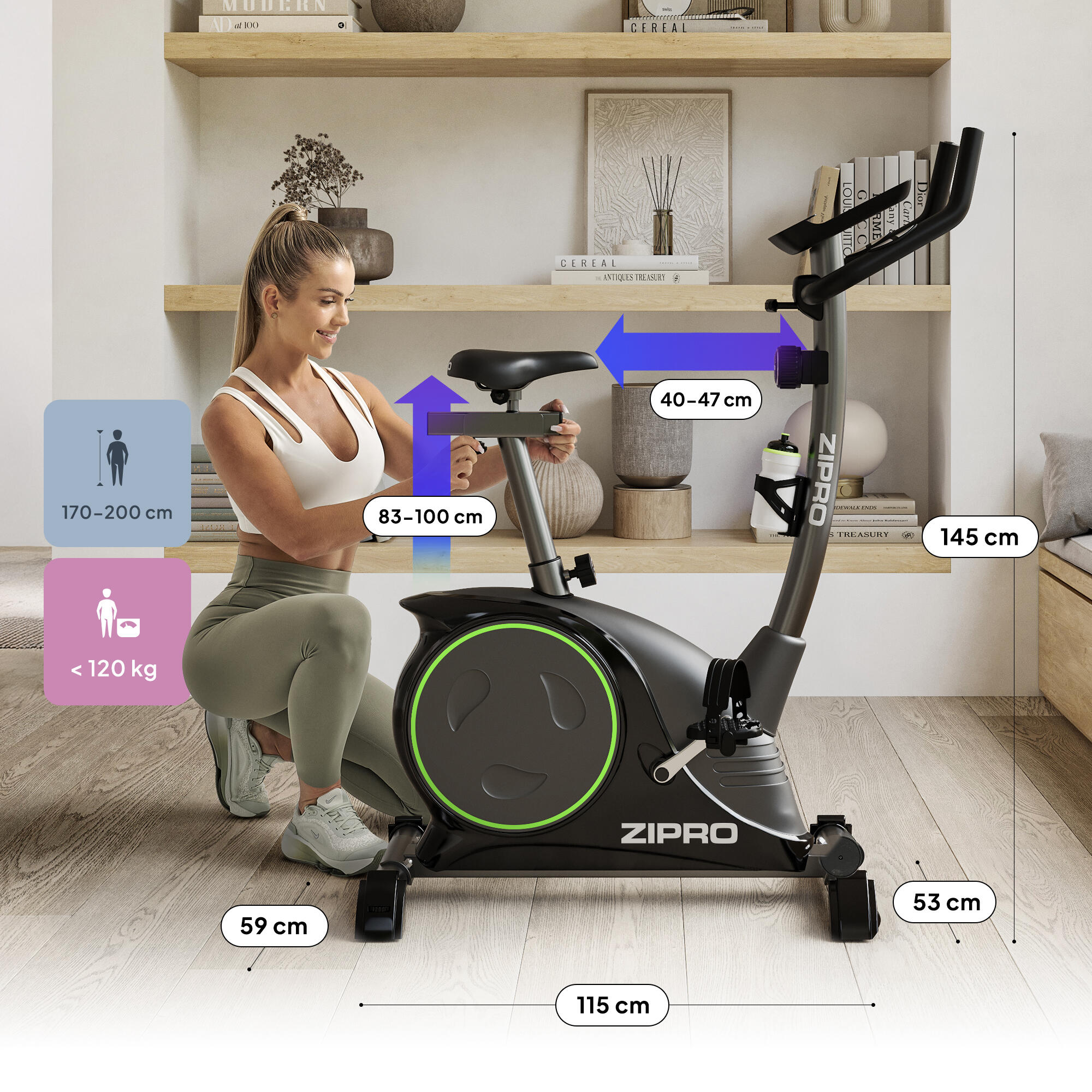 The **ZIPRO Nitro** is a modern home fitness bike that helps you set and achieve ambitious goals while enjoying visible results in the comfort of your own home.