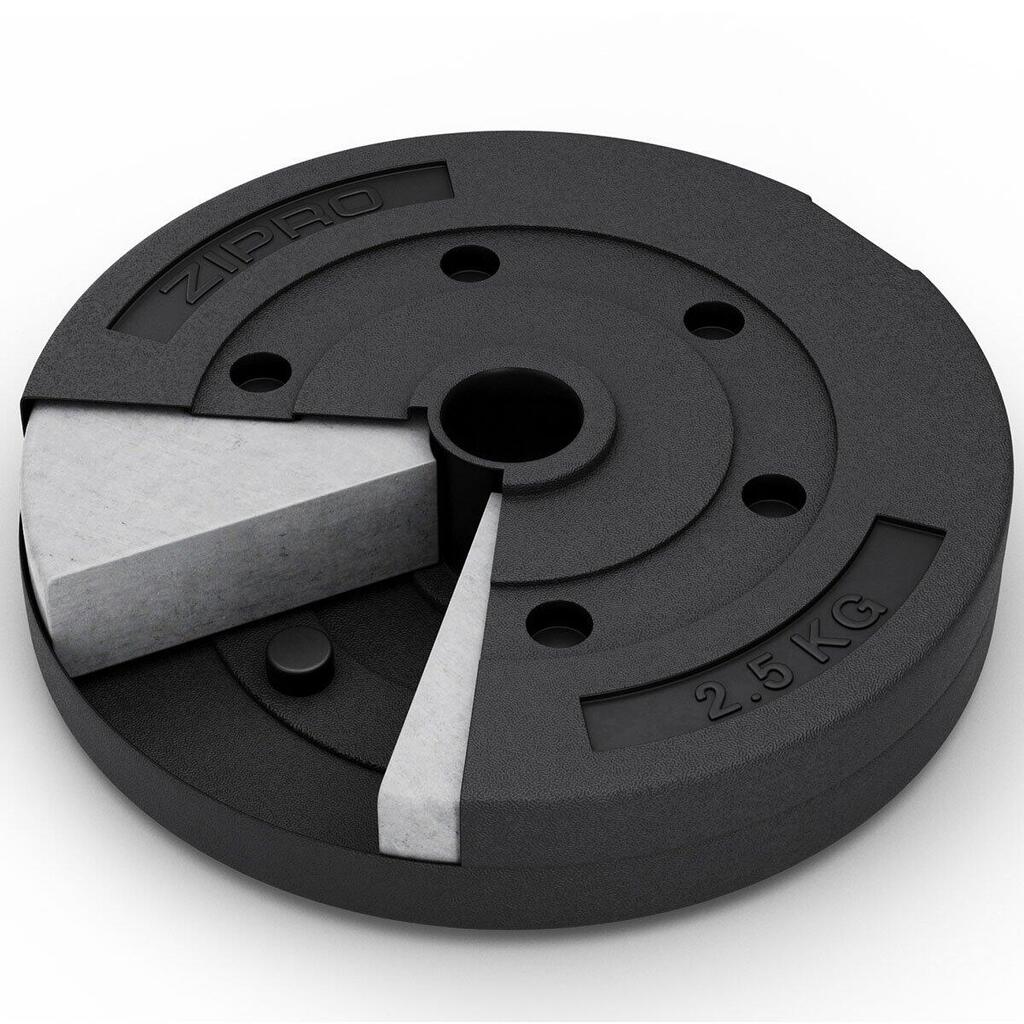 ZIPRO Bituminous Weight Plate: safe, quiet, and universal. Protects your floor and fits 28 mm barbells – ideal for effective home workouts.