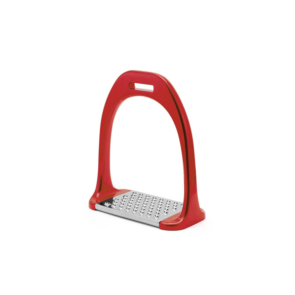 Colored stirrups made in aluminium and featuring a non-slip stainless steel footbed