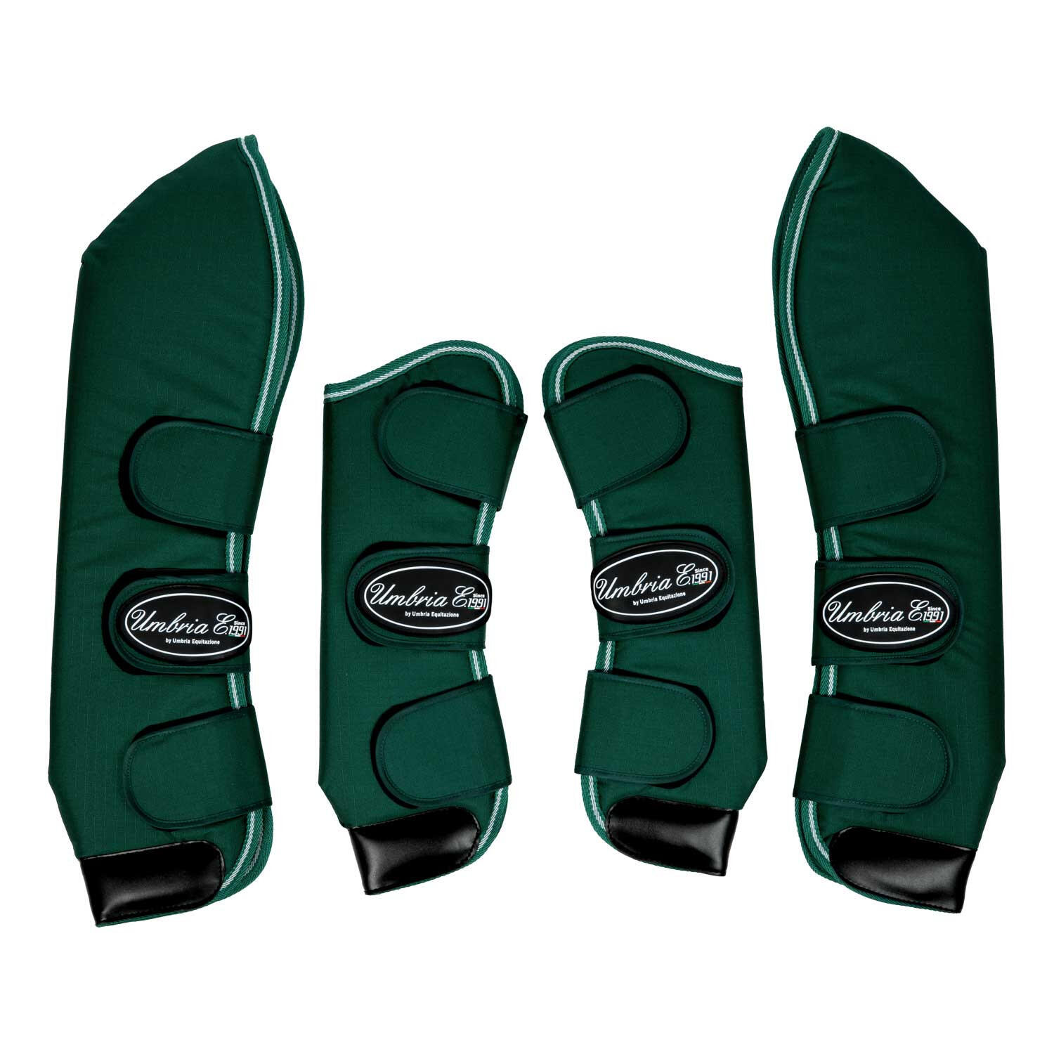 Set of 4 padded and shaped travel boots with anatomical leather reinforcements.