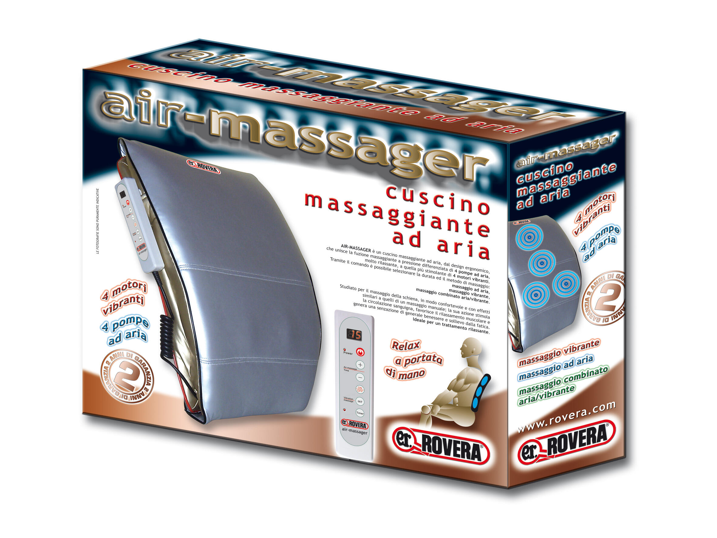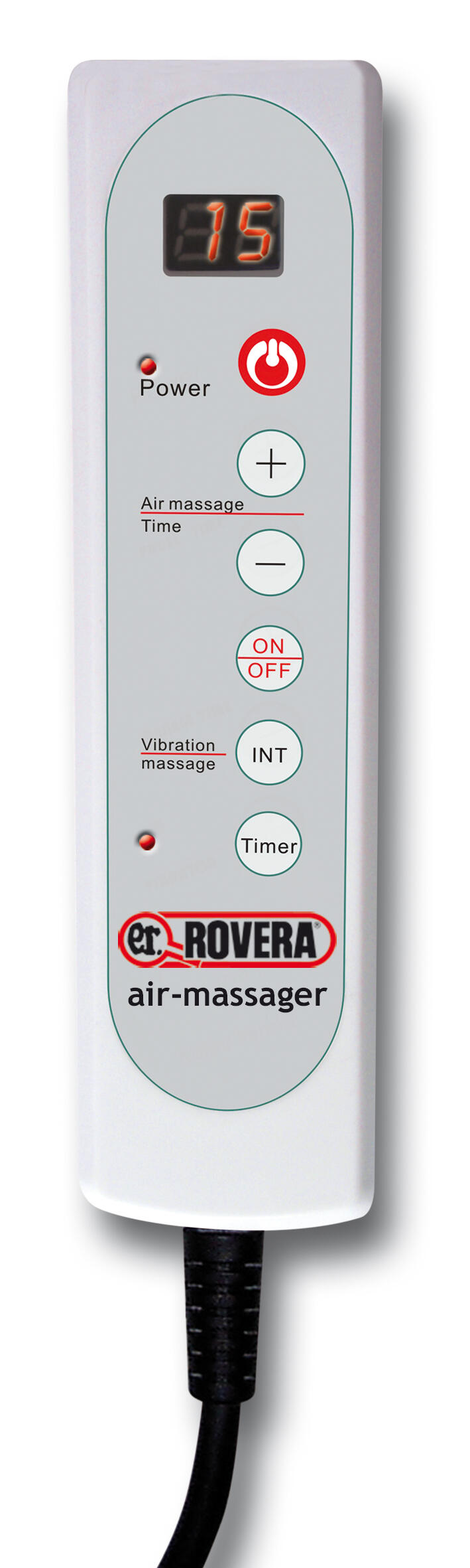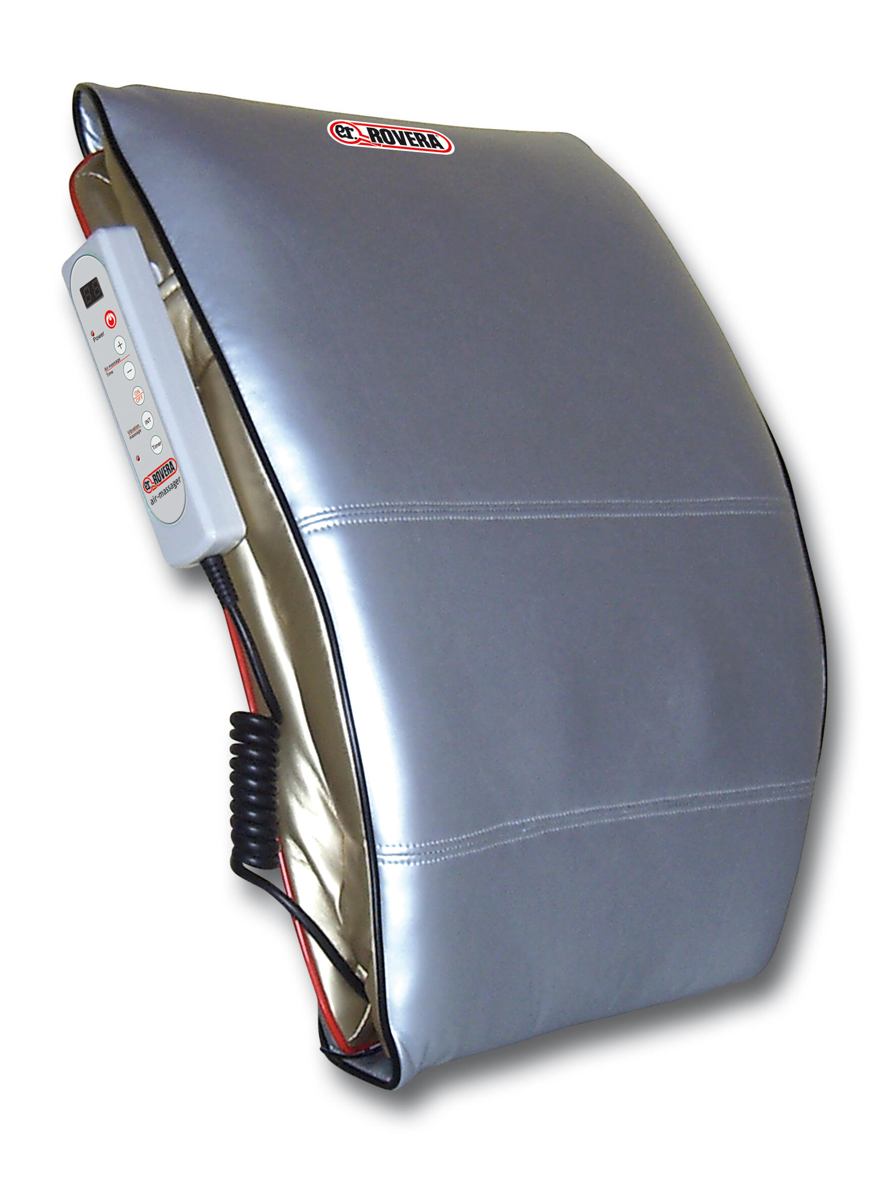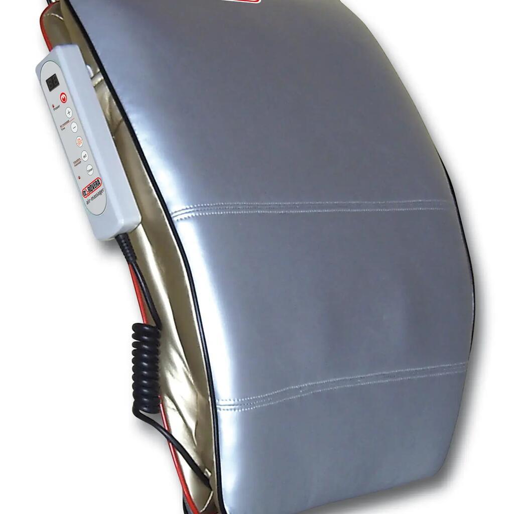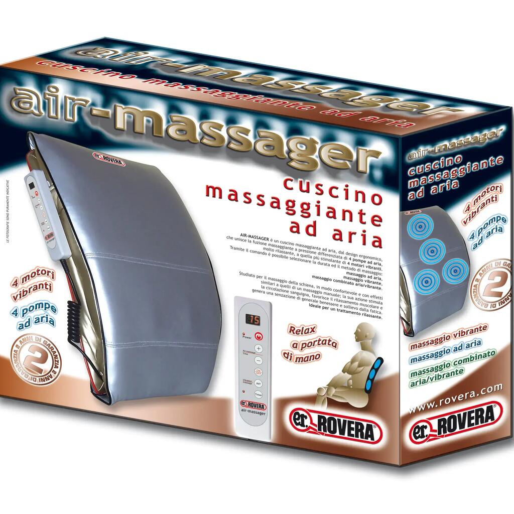 Air and vibration massage cushion, ergonomic design and adjustable timer.