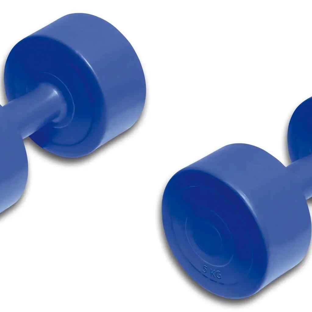Pair of 10 kg dumbbells (5 kg each) for strength, cross-training or functional work. Thick shock-resistant vinyl coating.