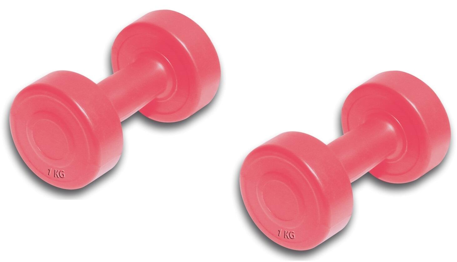 FREE DELIVERY Pair of 2 kg dumbbells (1 kg each) for strength or cross-training. Thick shock-resistant vinyl coating.