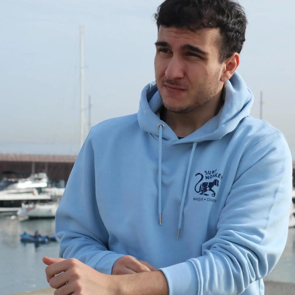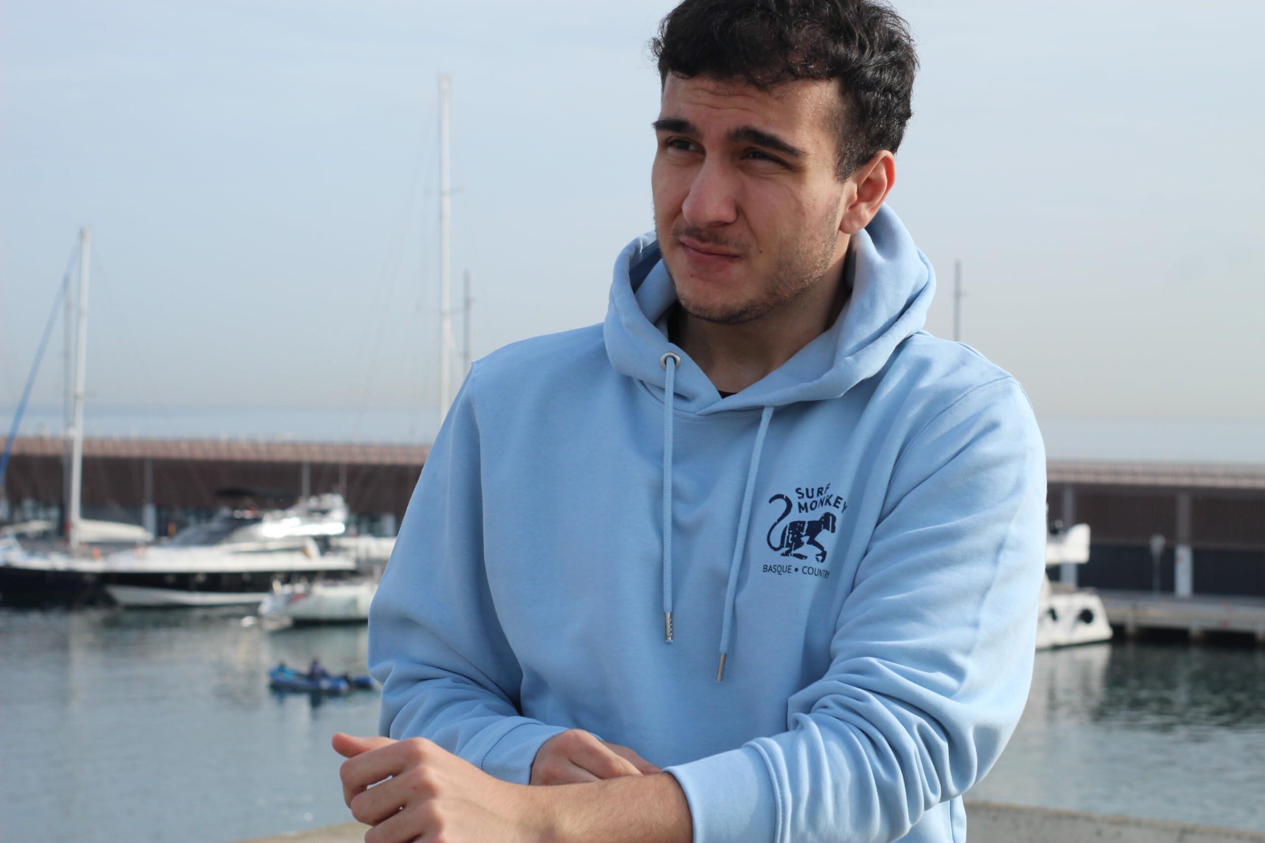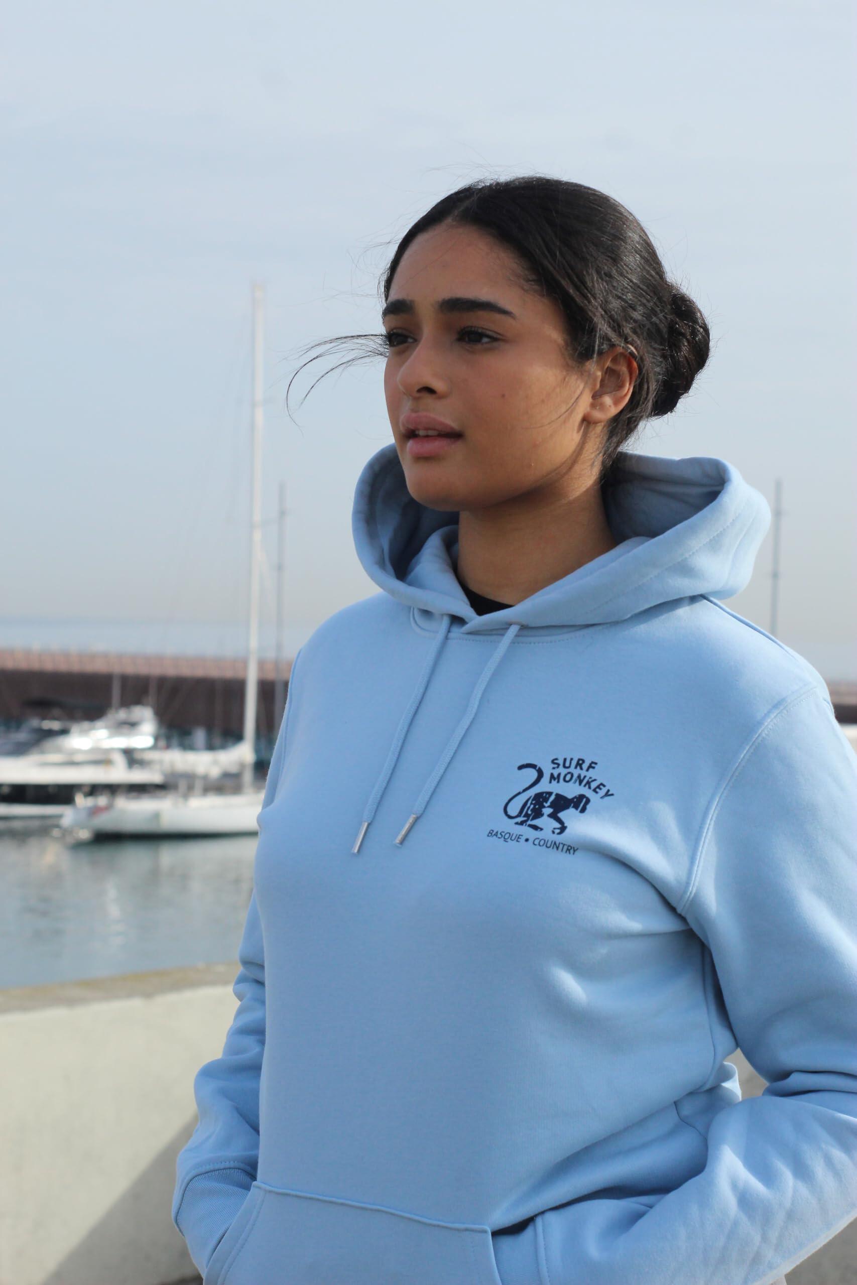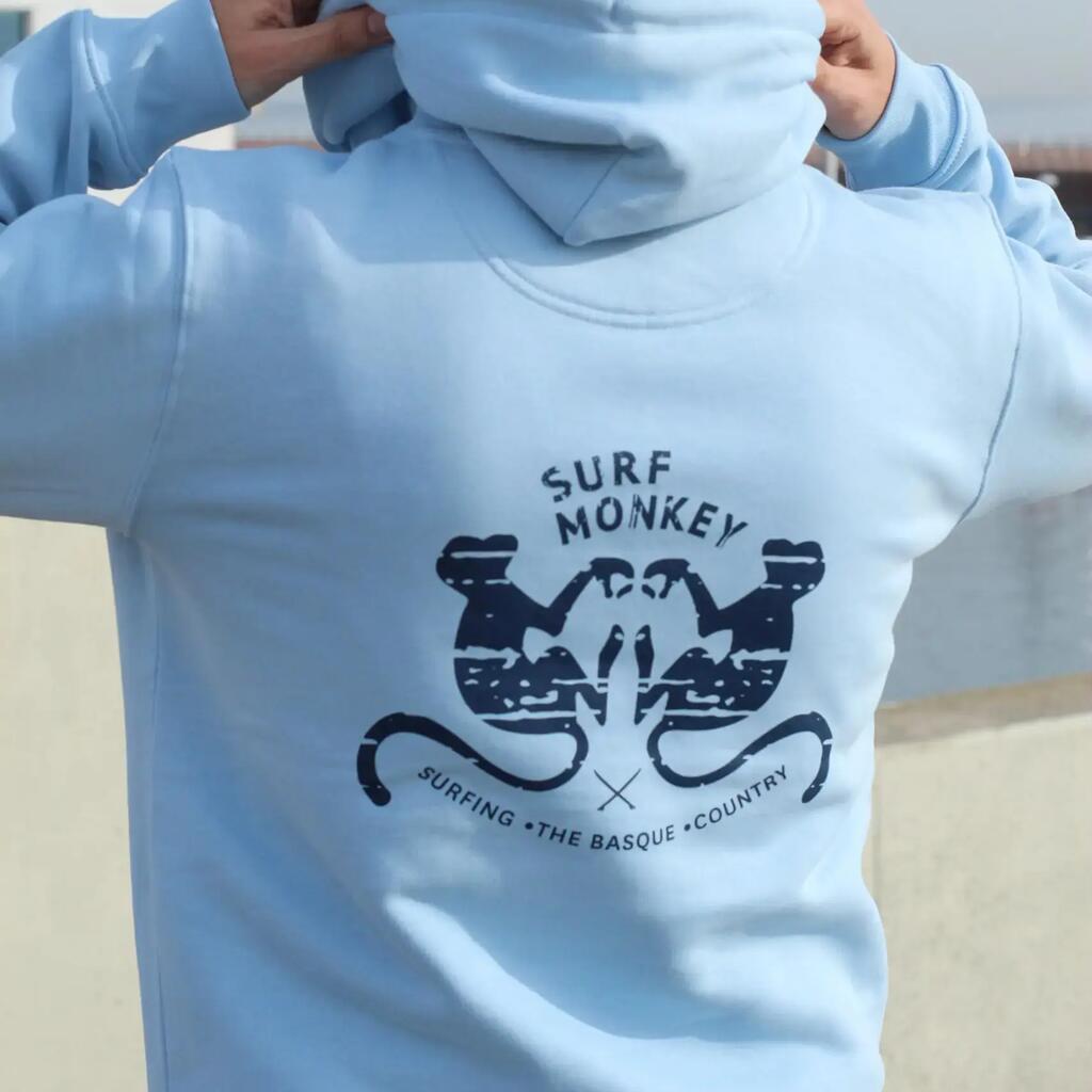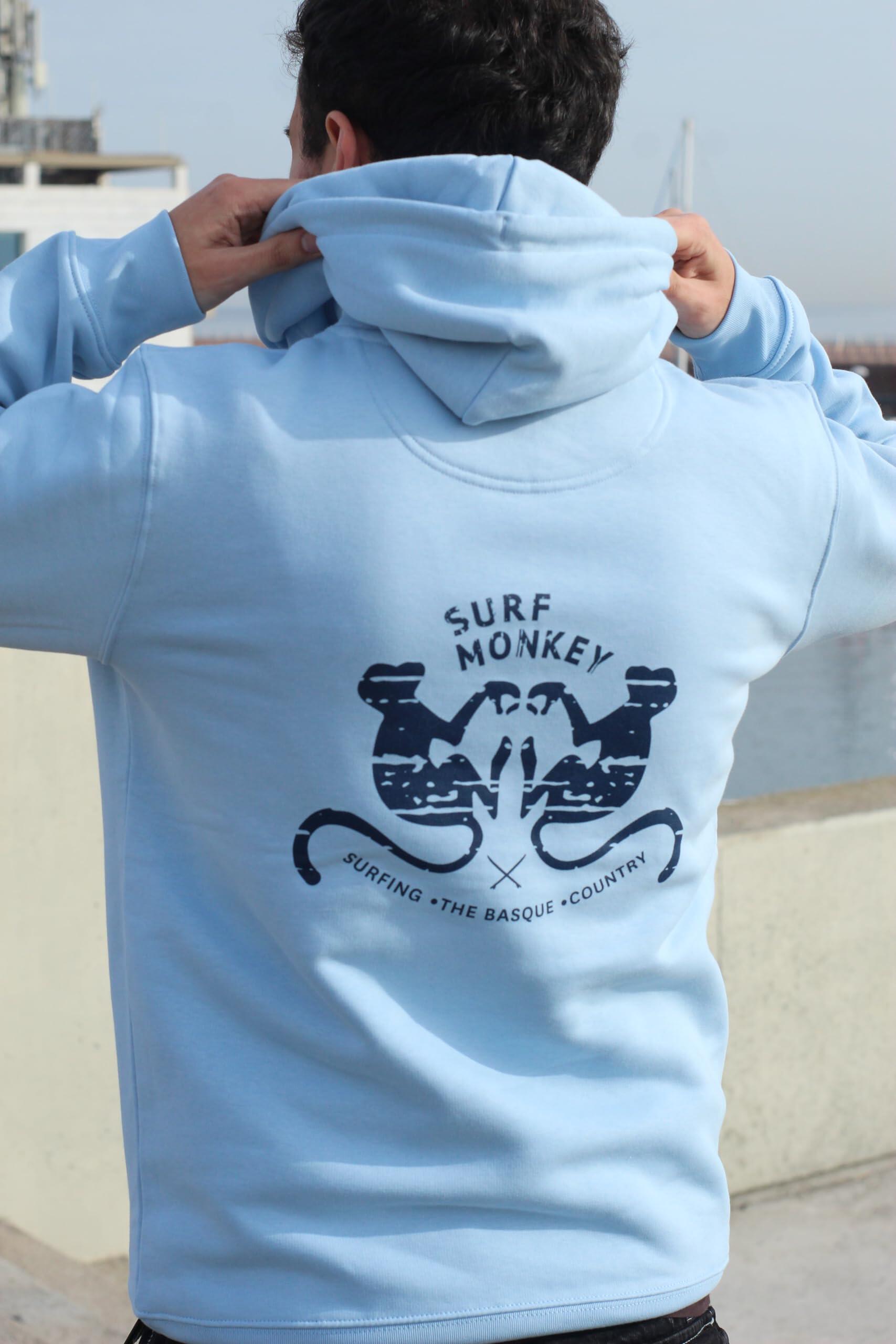Cotton Sweatshirt - 2 Monkeys - Hooded / Adult (Blue)