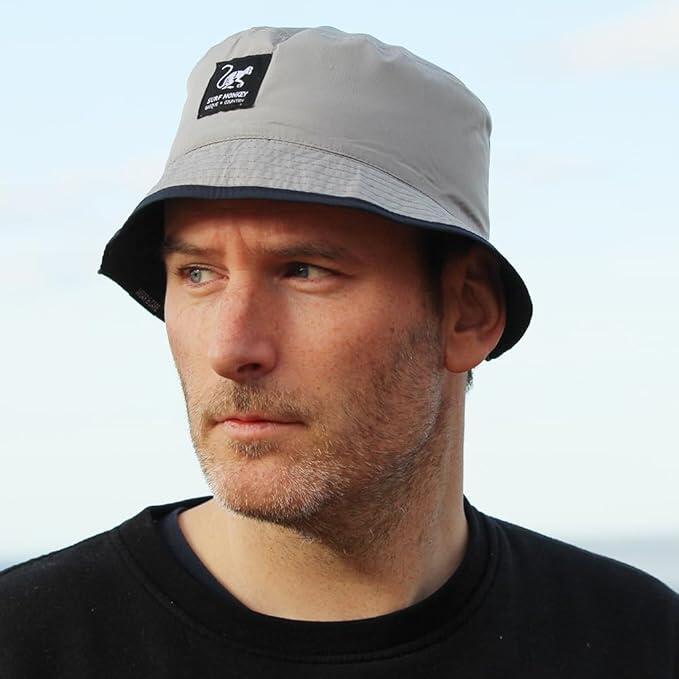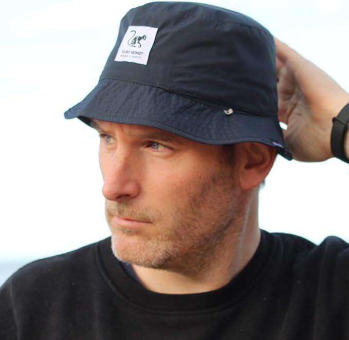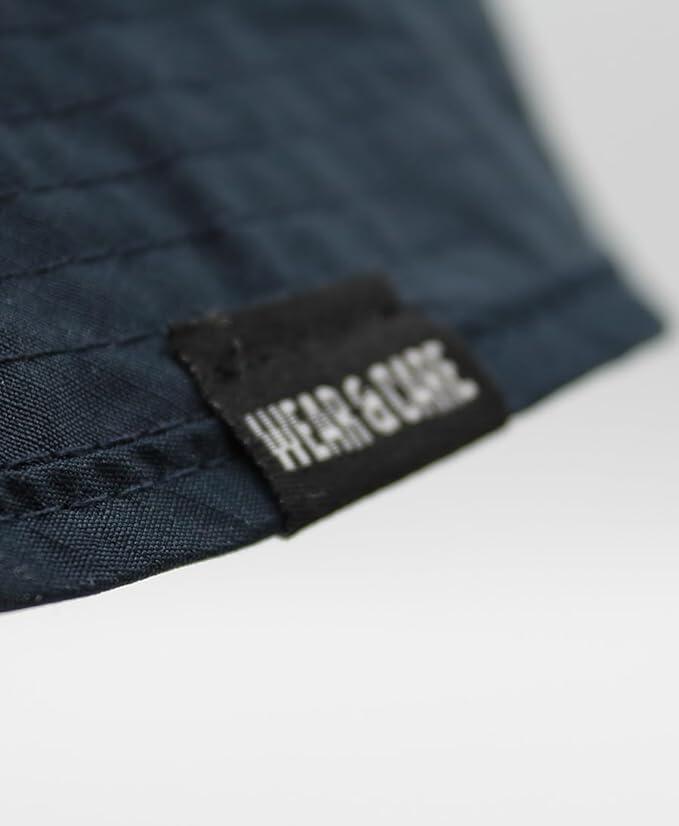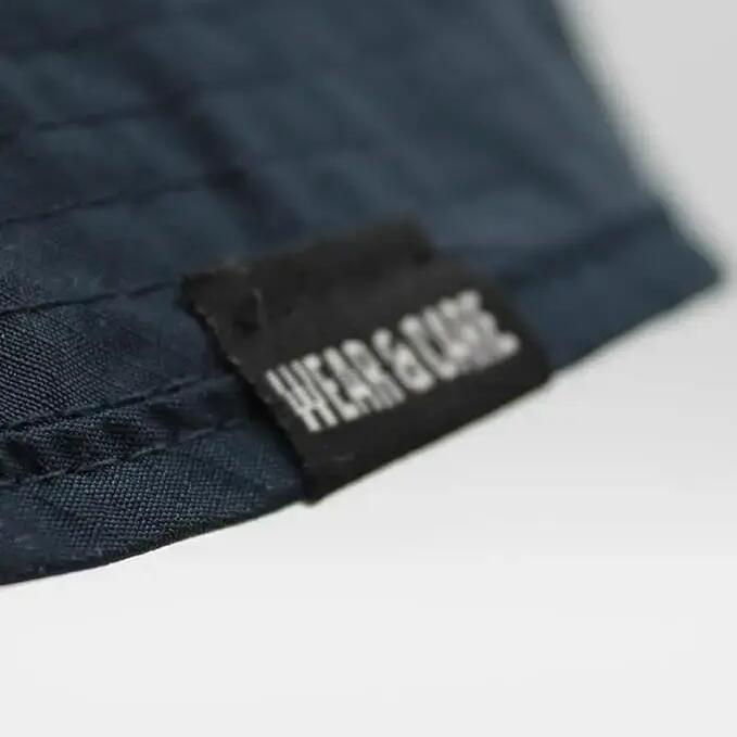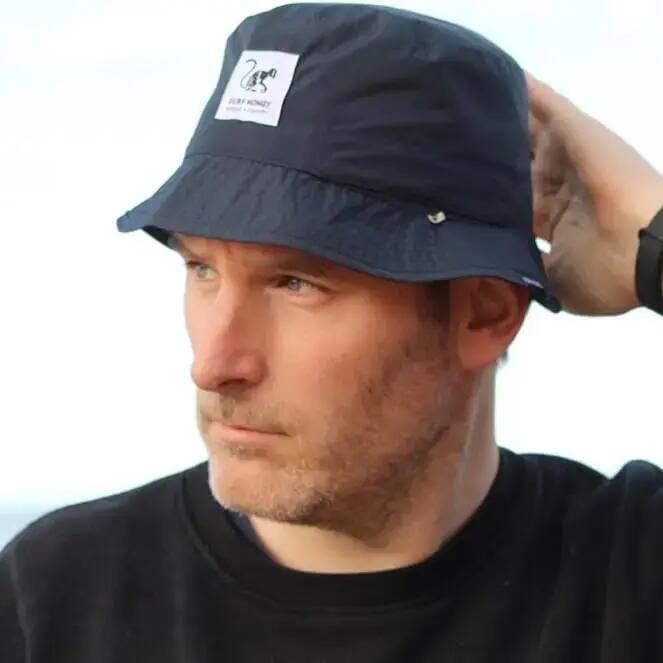 100% recycled polyester circular hat / Waterproof hat with side pocket / Reversible hat / One size - approx. 58cm. Inner pocket and outer hook. Hand wash.