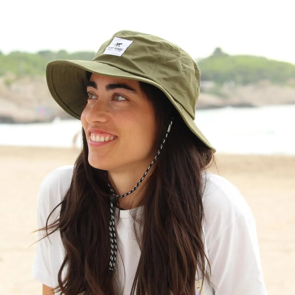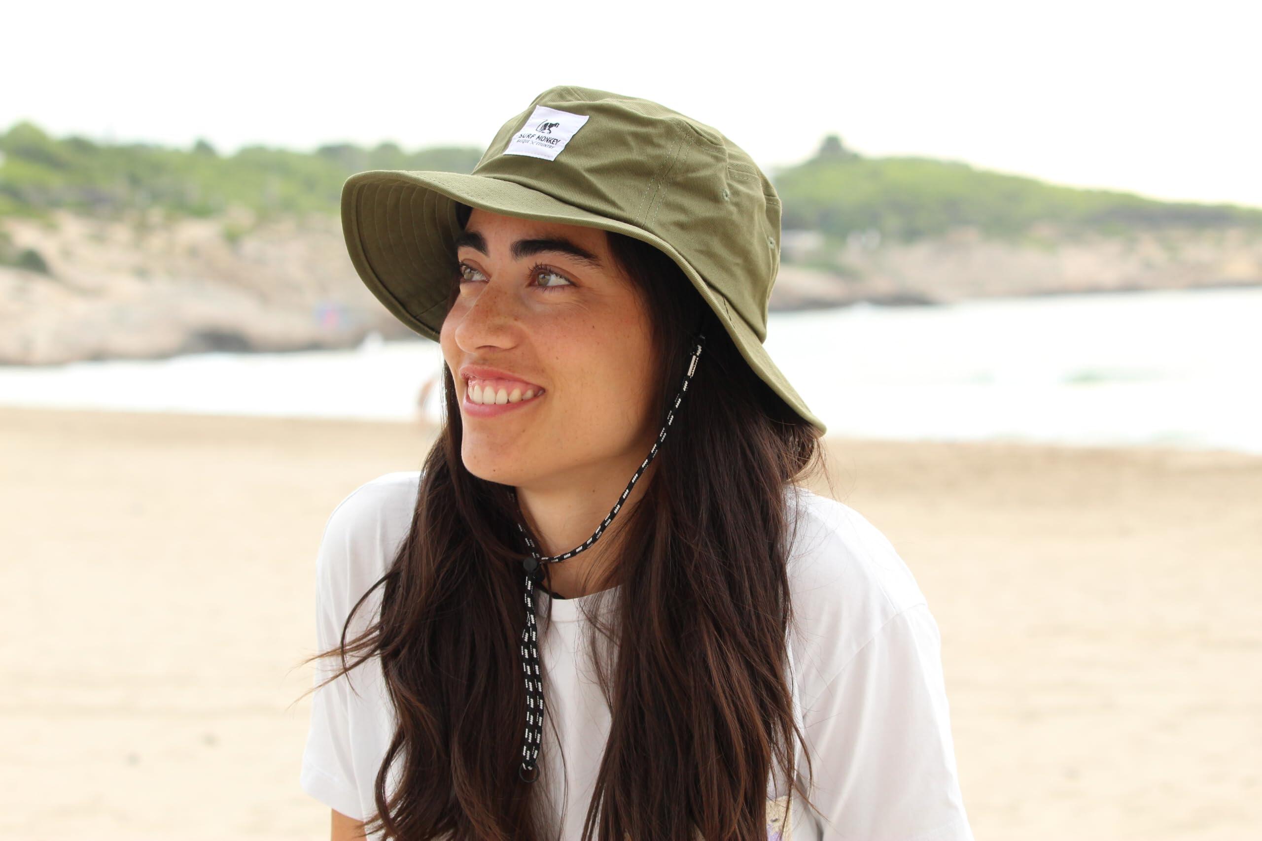 Wide-brimmed cotton hat with adjustable chin strap - One size (approx. 58 cm) / Brim length: 7 cm - Side holes for better ventilation