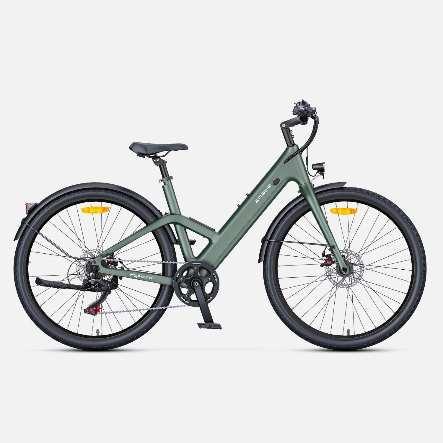 Discover the ENGWE N1 AIR ST 250W electric bike with a 36V10Ah battery, 27.5" wheels, disc brakes, and a stylish green design. Ideal for city riding.