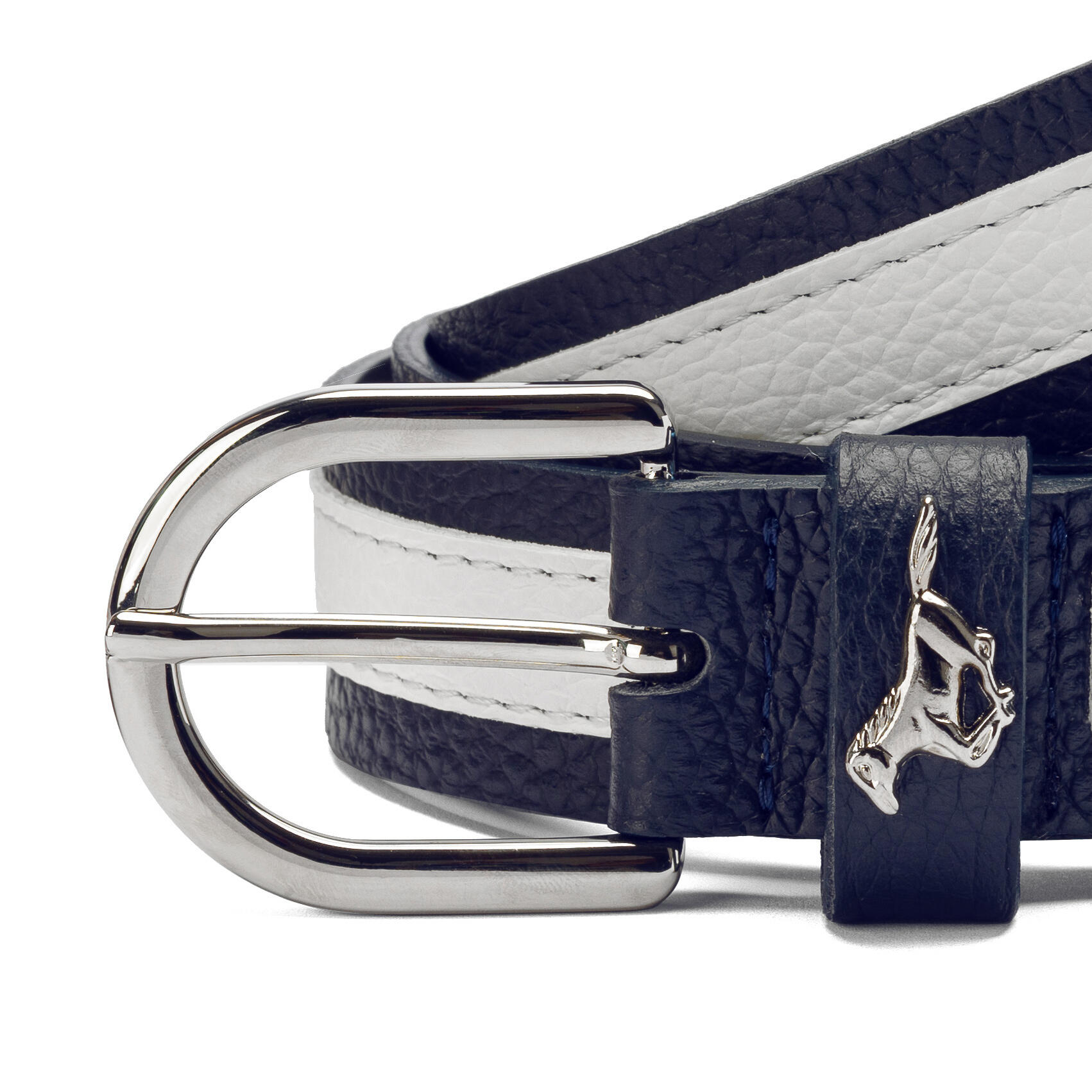 Elegant Italian leather equestrian belt with snake-effect texture and silver horse emblem, handcrafted in Europe for a refined riding look.