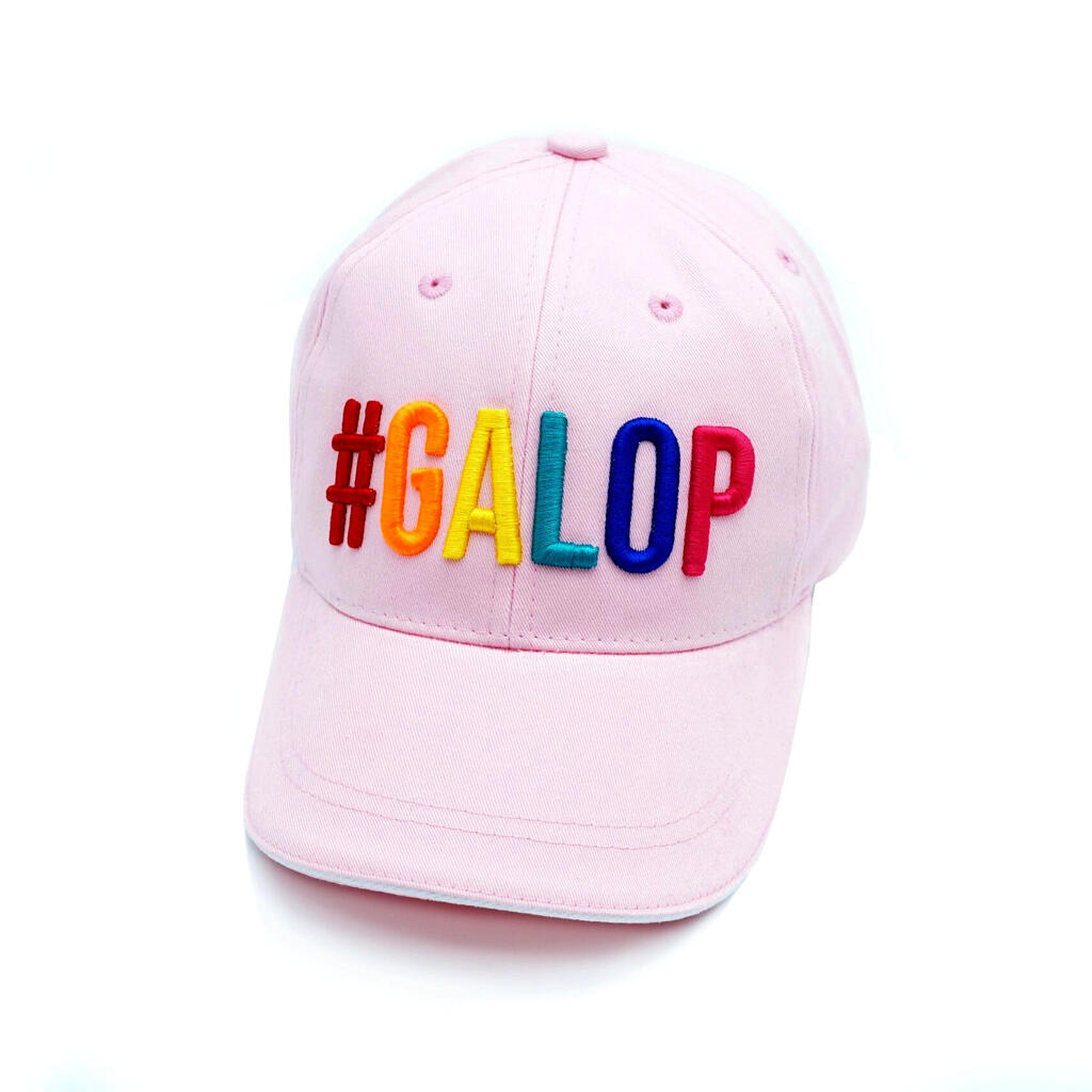 Pink #GALOP Cap – bold 3D embroidery and adjustable fit for stylish everyday equestrian wear.