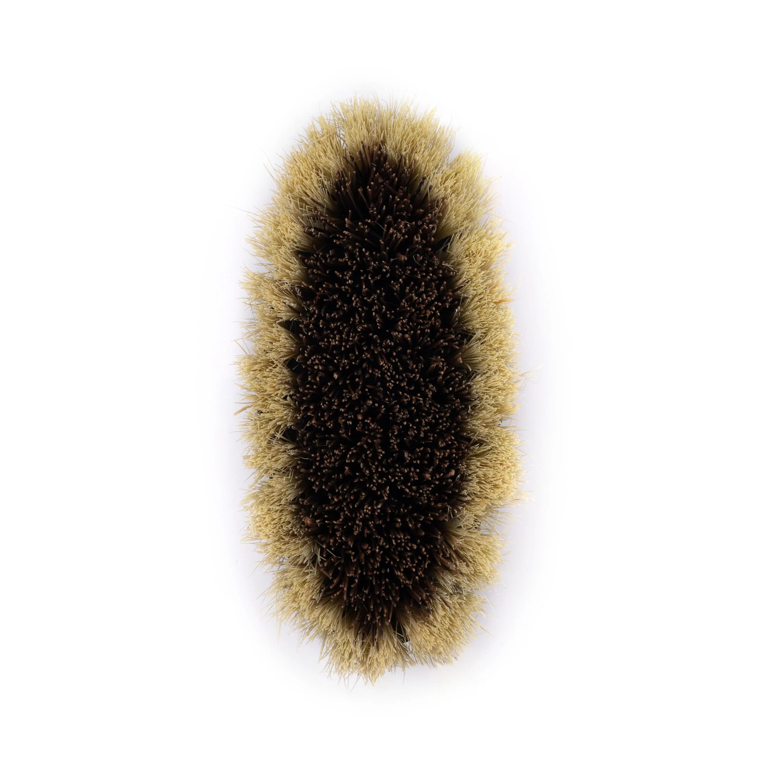 Powerful dual-fiber grooming brush with a beechwood body—ideal for removing tough dirt and mud with comfort and style.