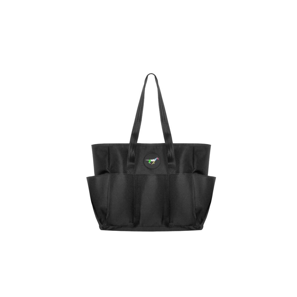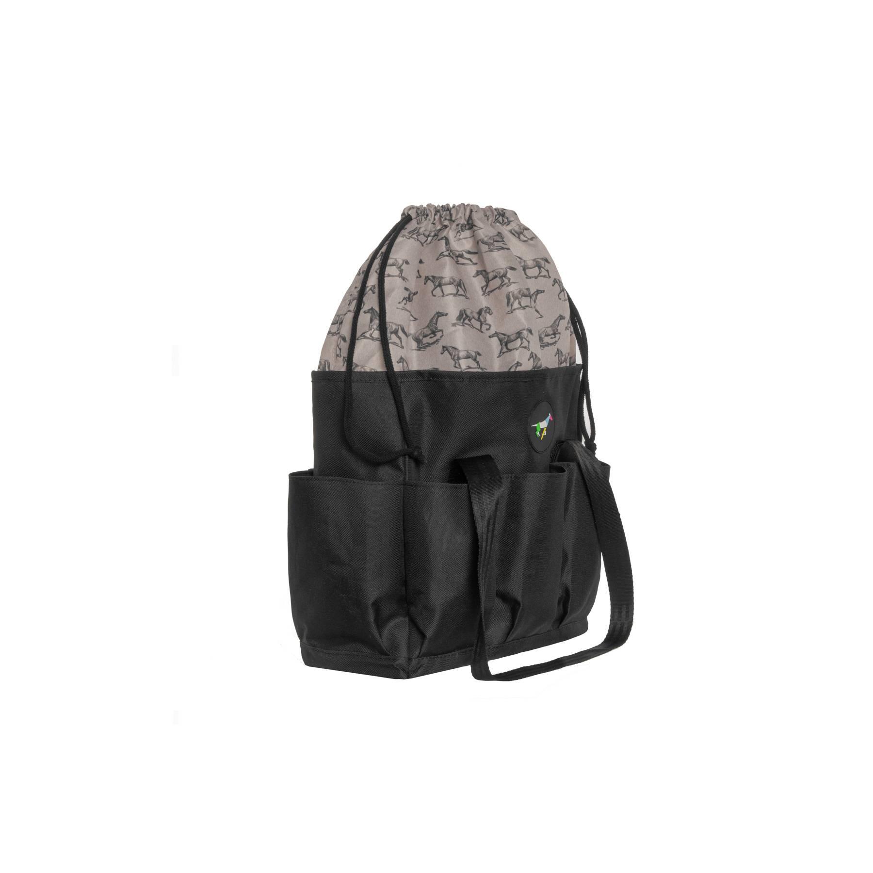 Elegant, spacious grooming bag with drawstring dome top and 8 pockets — perfect for stable, travel, and competitions, designed and made in the EU.