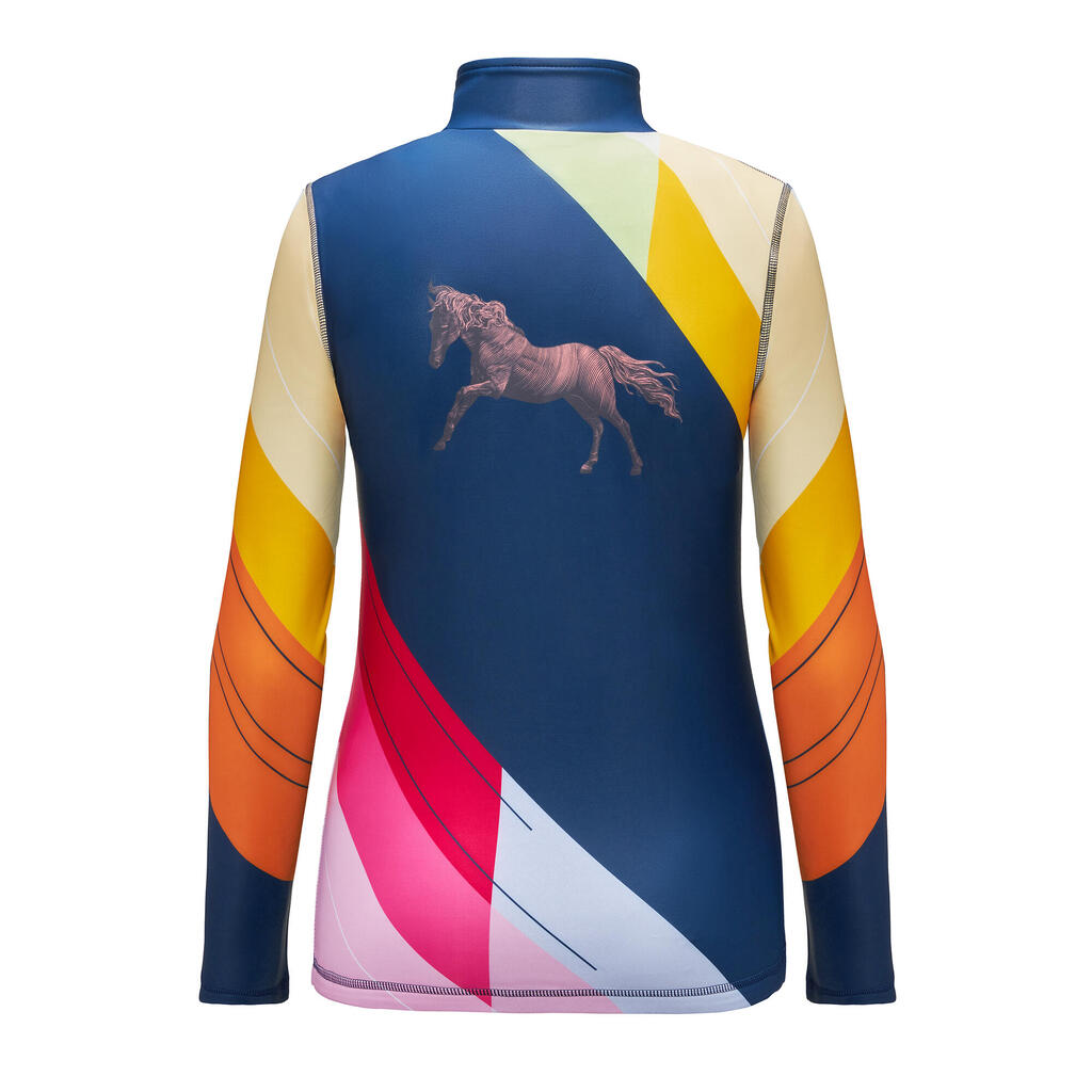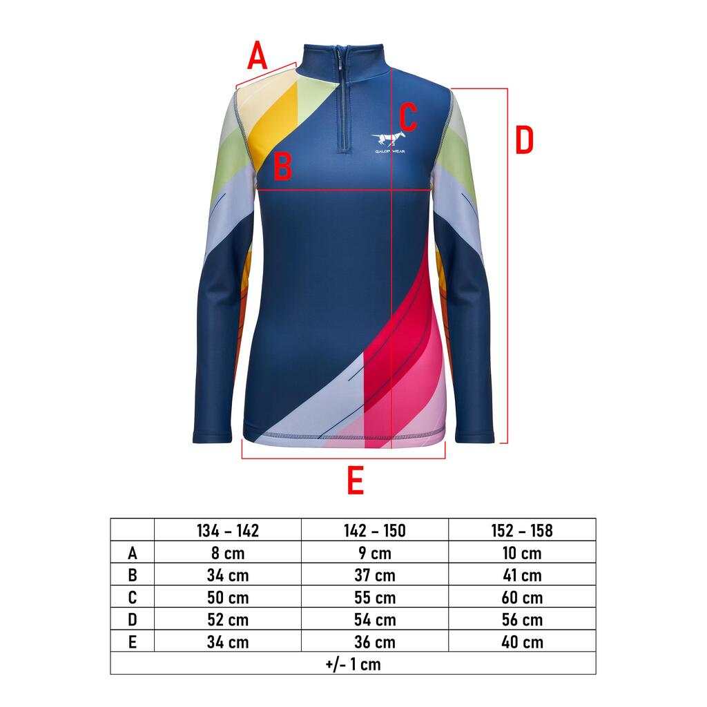Stretchy Lycra® youth riding sweatshirt with bold geometric design, silicone hem grip and flat seams—perfect for training and everyday wear.