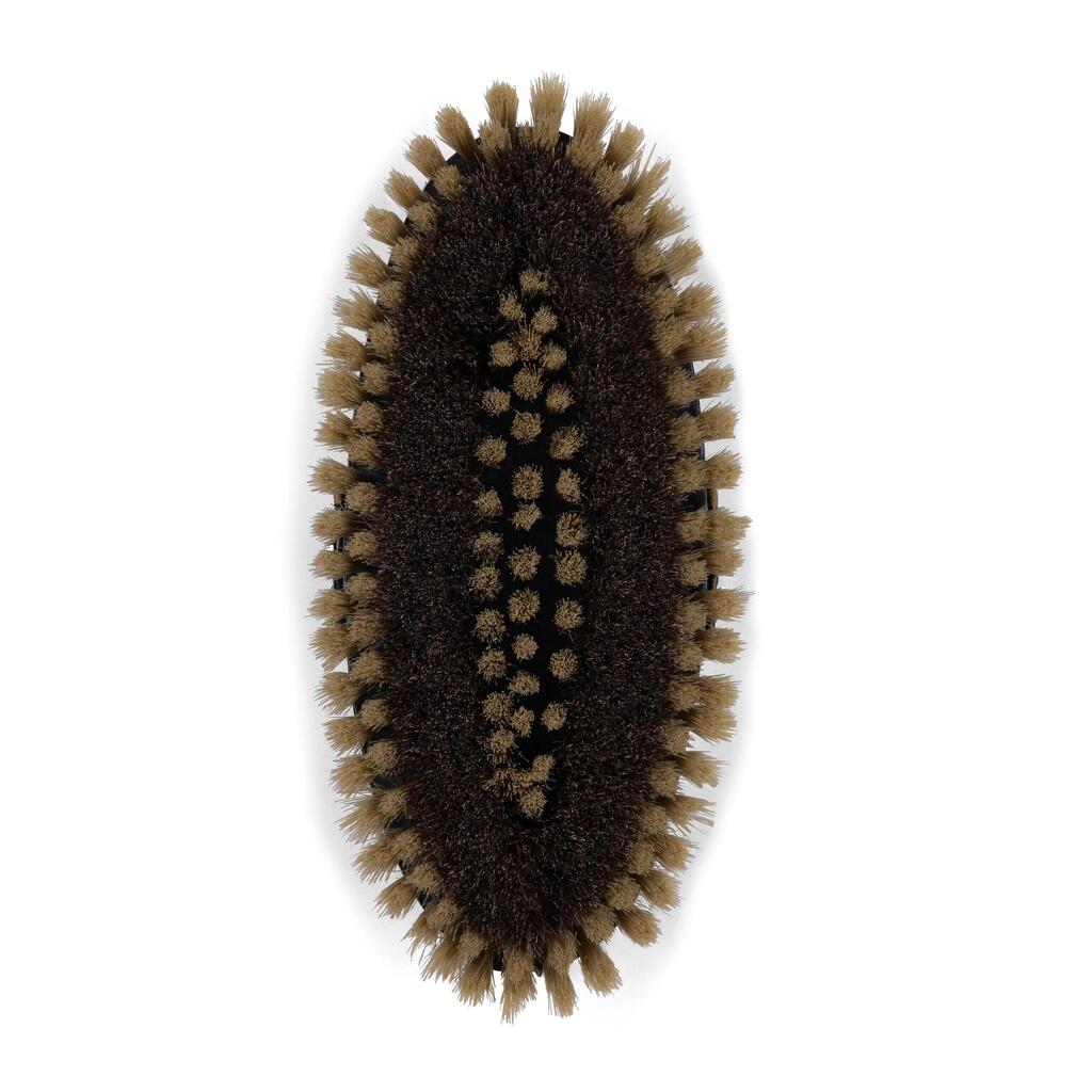 Large, soft-bristle grooming brush with beechwood body—gentle, effective and hand-crafted for premium daily horse care.