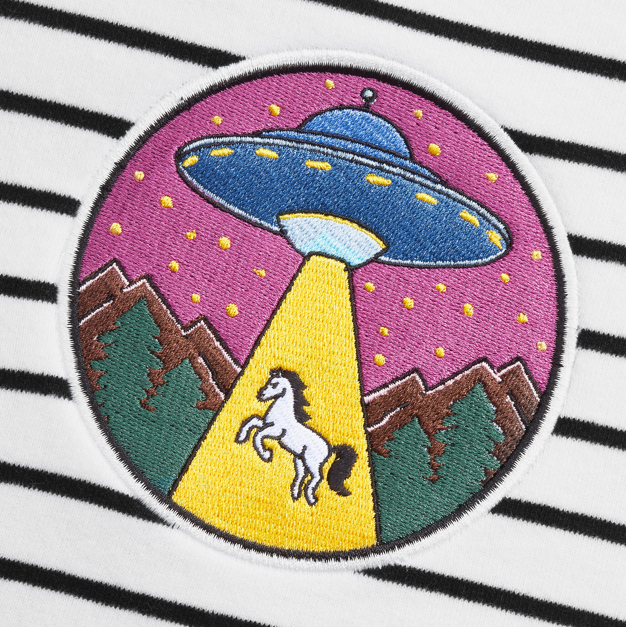 Cozy oversized equestrian sweatshirt with a playful UFO–horse patch, made in Europe for style, comfort, and everyday stable wear.p