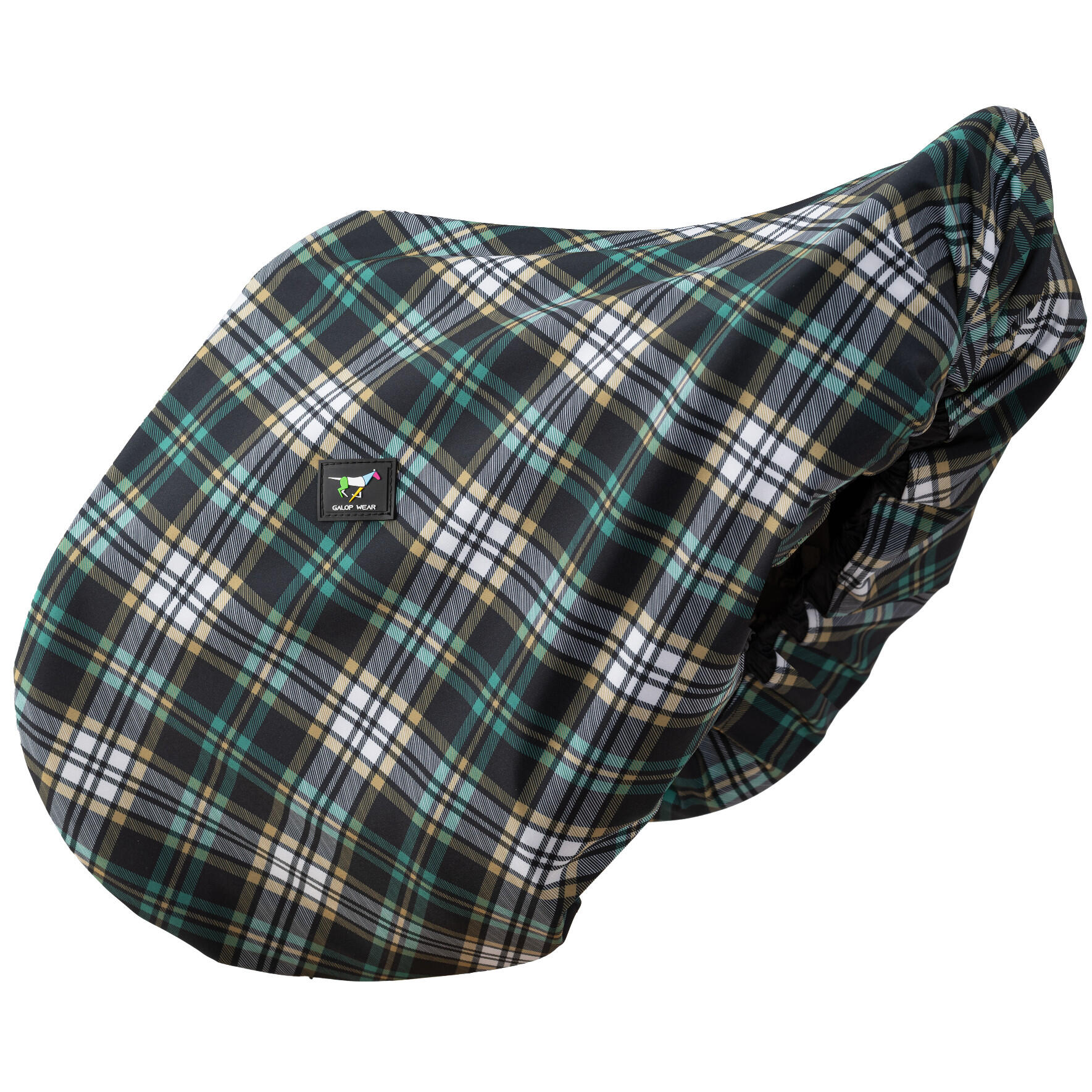 Durable, breathable Soft Shell saddle cover with a classic plaid design, offering reliable protection in the stable and during transport.