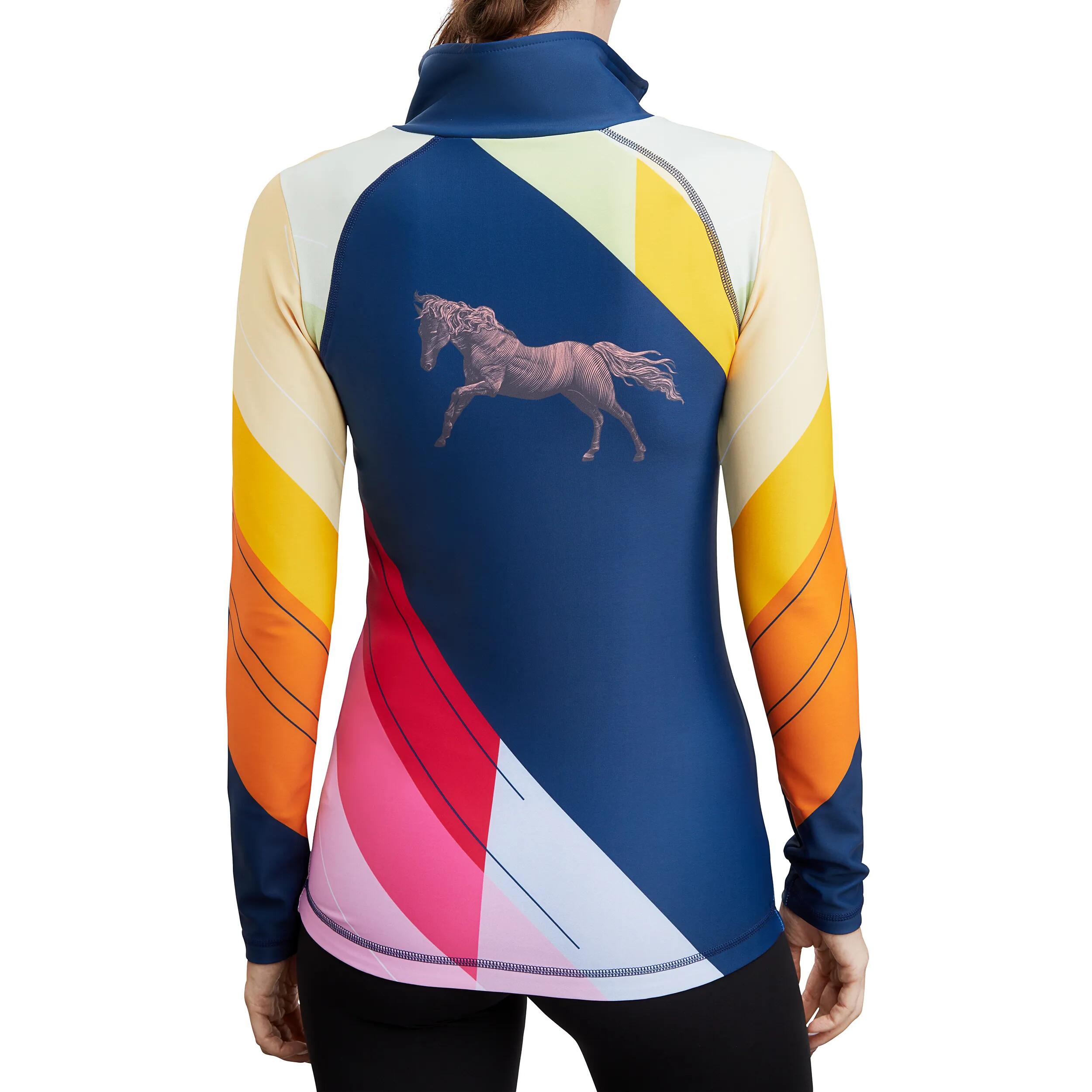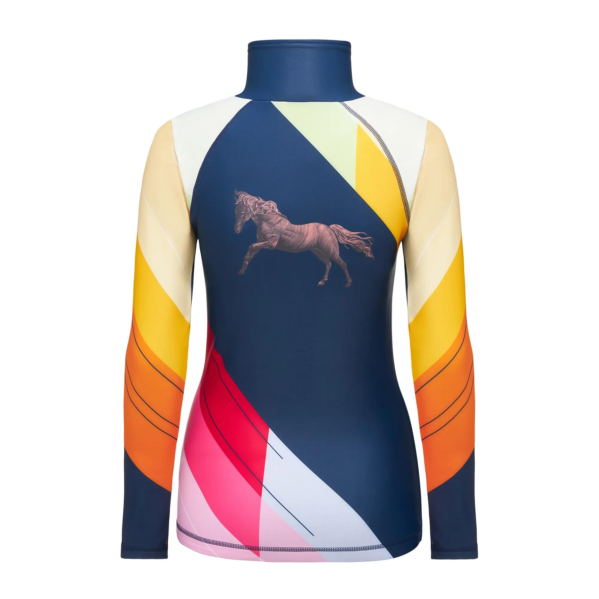 High-performance Lycra® equestrian sweatshirt with bold geometric design, silicone hem grip, and EU-made quality—perfect for training and everyday wear.