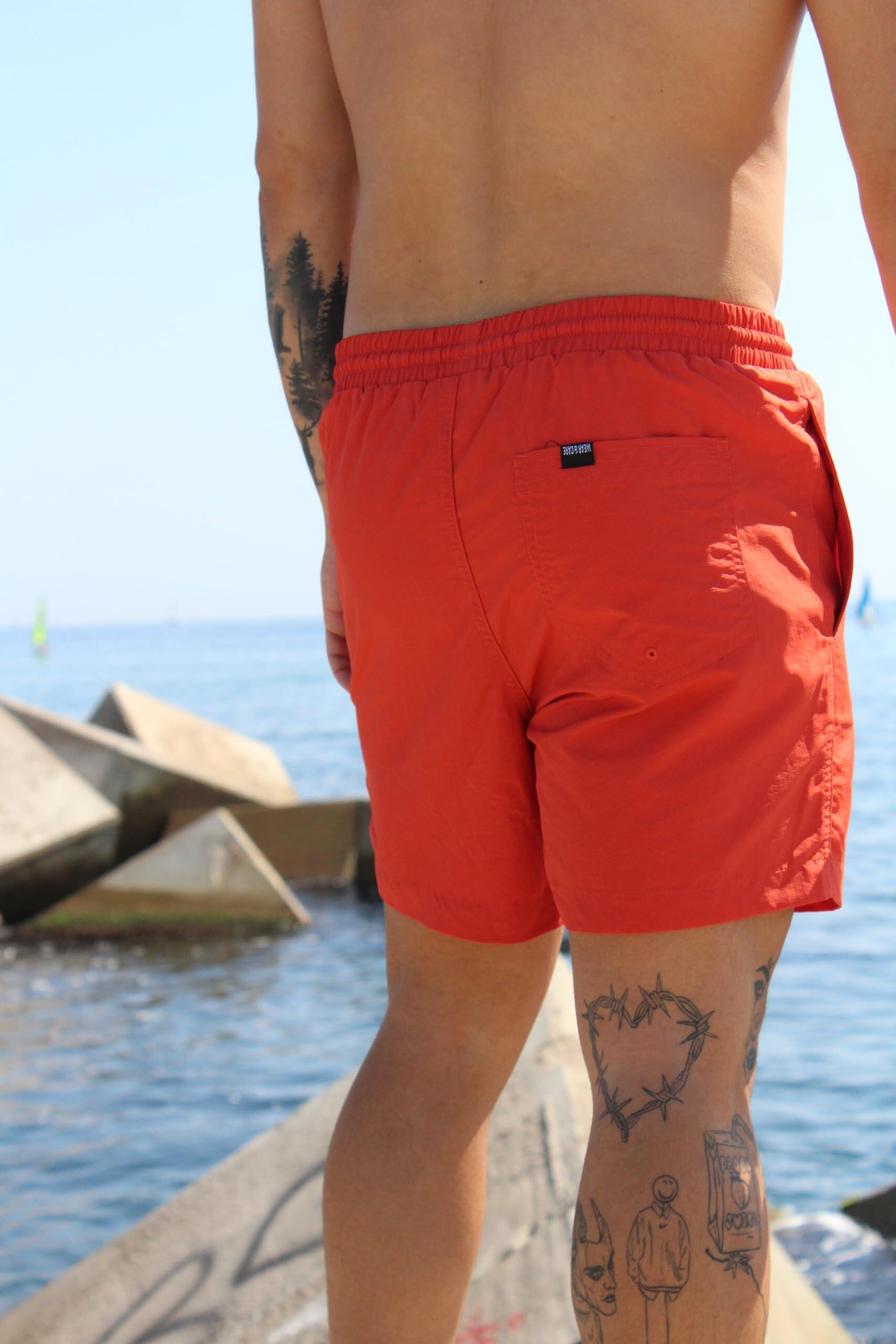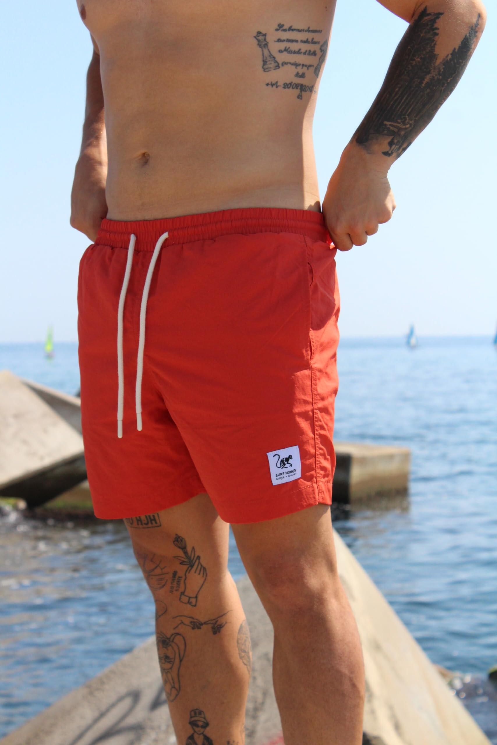 Men's Short Swim Shorts - Recycled Polyester / Quick-Dry (Paprika)