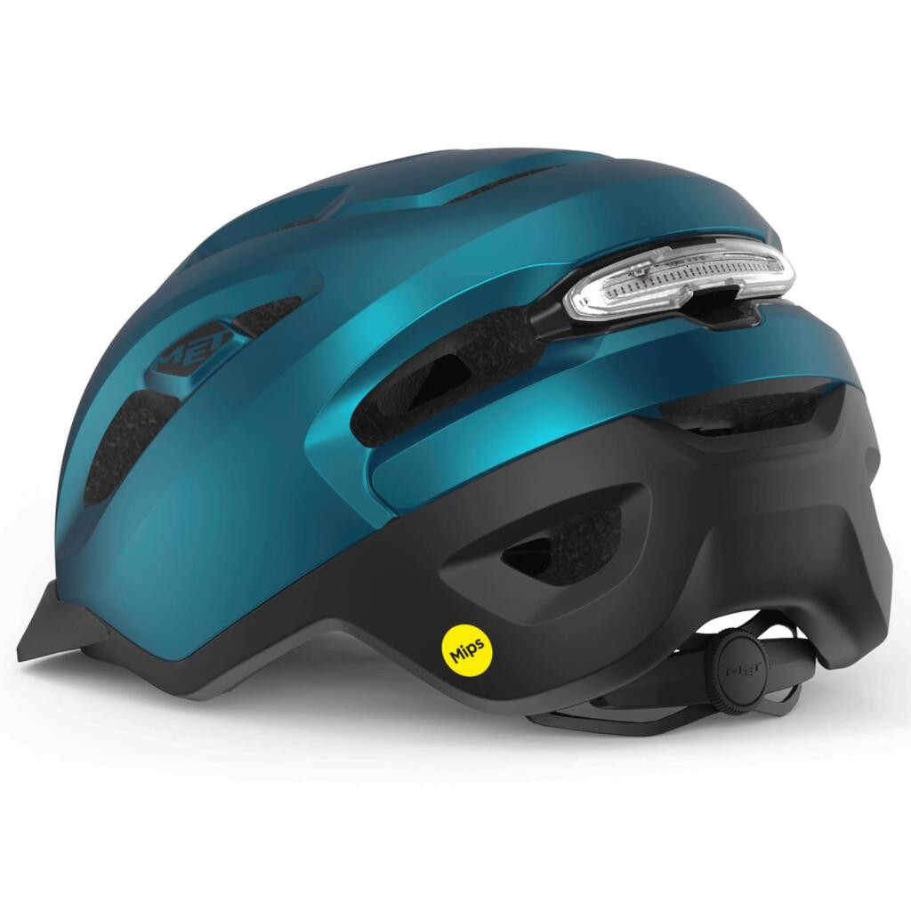 Ride safely with the Met Urbex Mips bike helmet: ultramodern, NTA-certified, with MIPS, and equipped with a magnetic USB LED light. #urbanmobility #bikesafety
