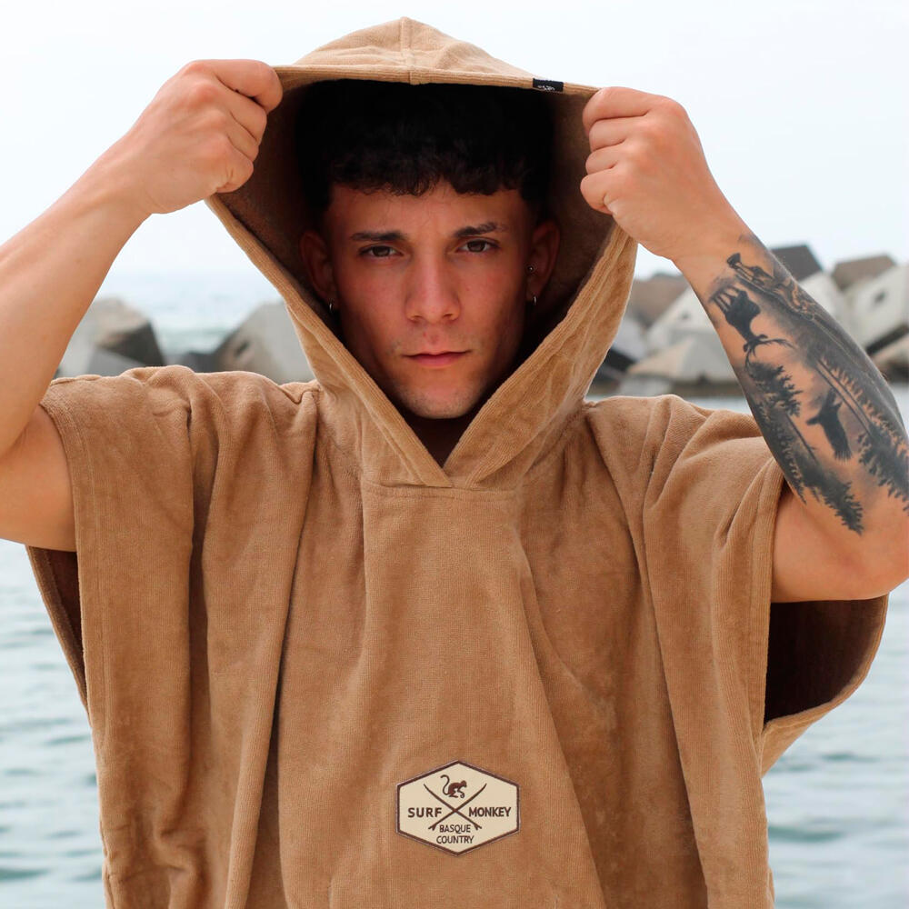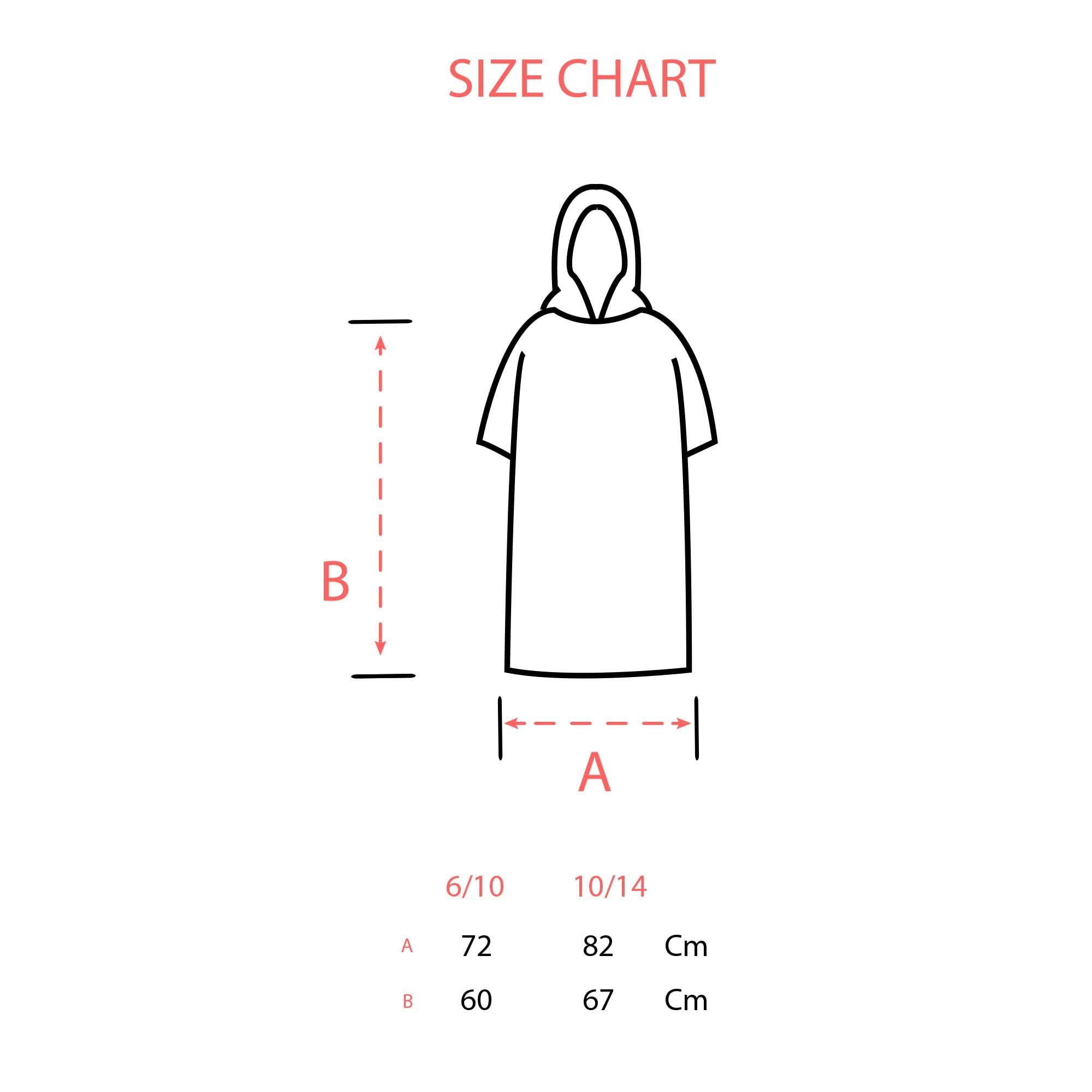 This 100% cotton surf poncho is perfect for after a day in the water, with absorbent terry fabric for quick drying. GOTS certified, with side openings. Hand wash.