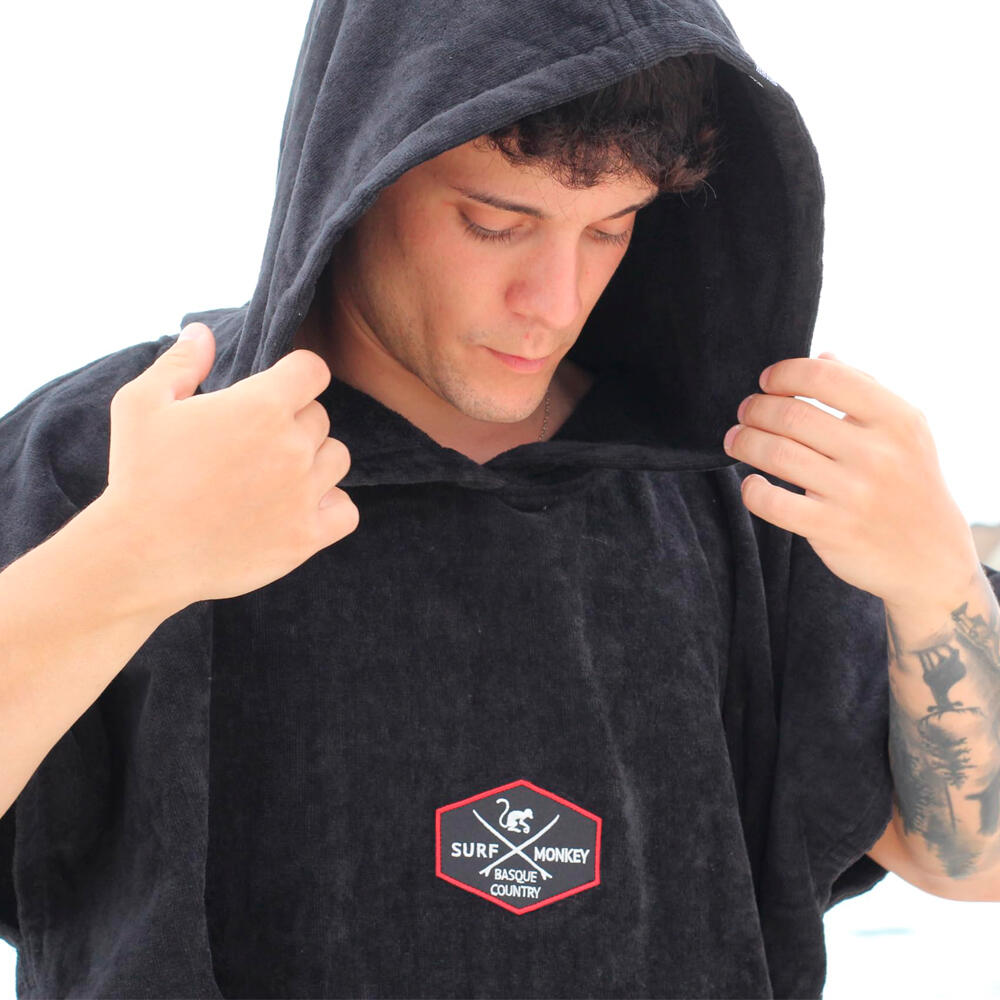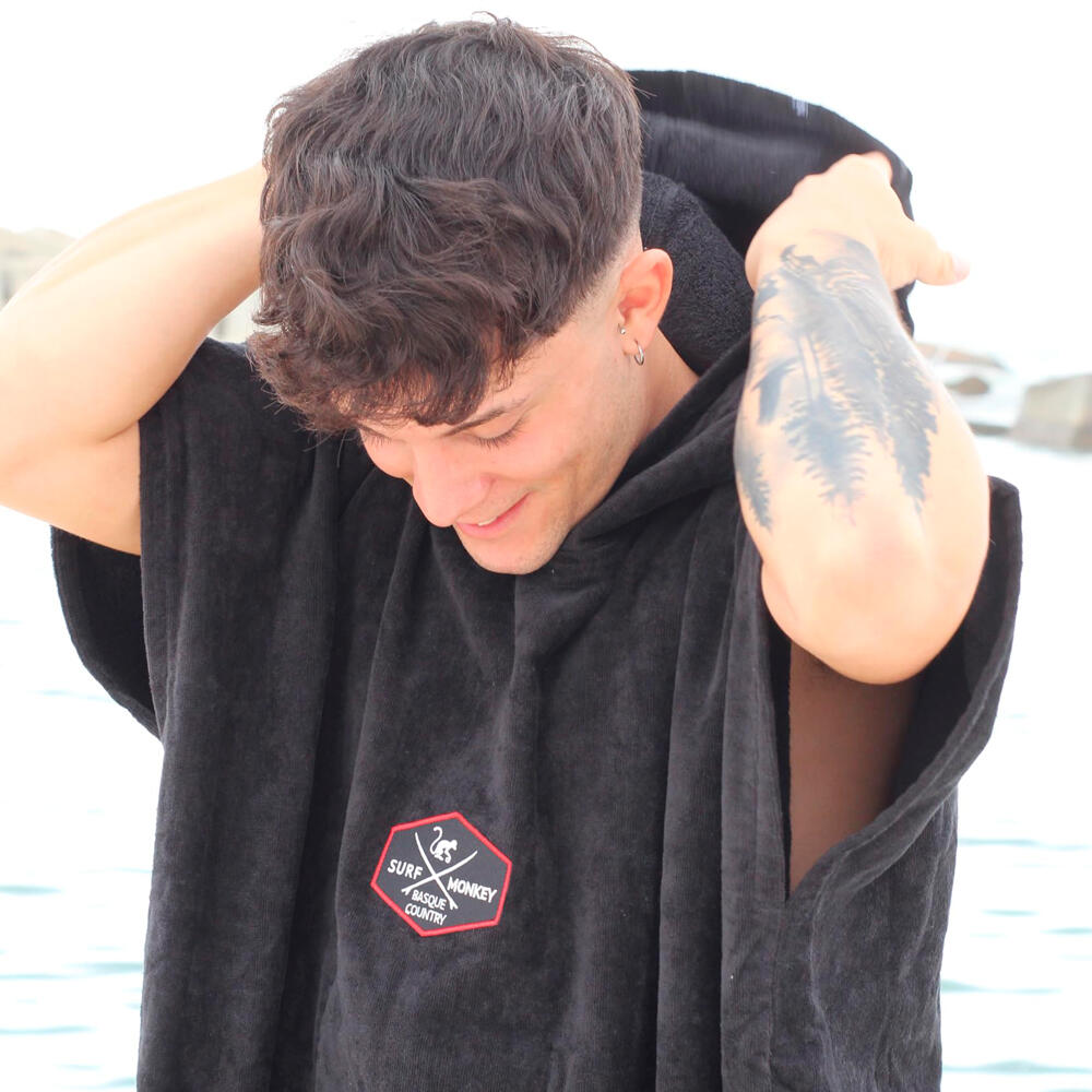 This 100% cotton surf poncho is perfect for after a day in the water, with absorbent terry fabric for quick drying. GOTS certified, with side openings. Hand wash.