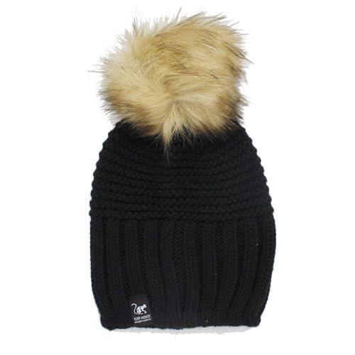 Beanie with Pompom - Unisex - One Size - Made in the EU (Black)