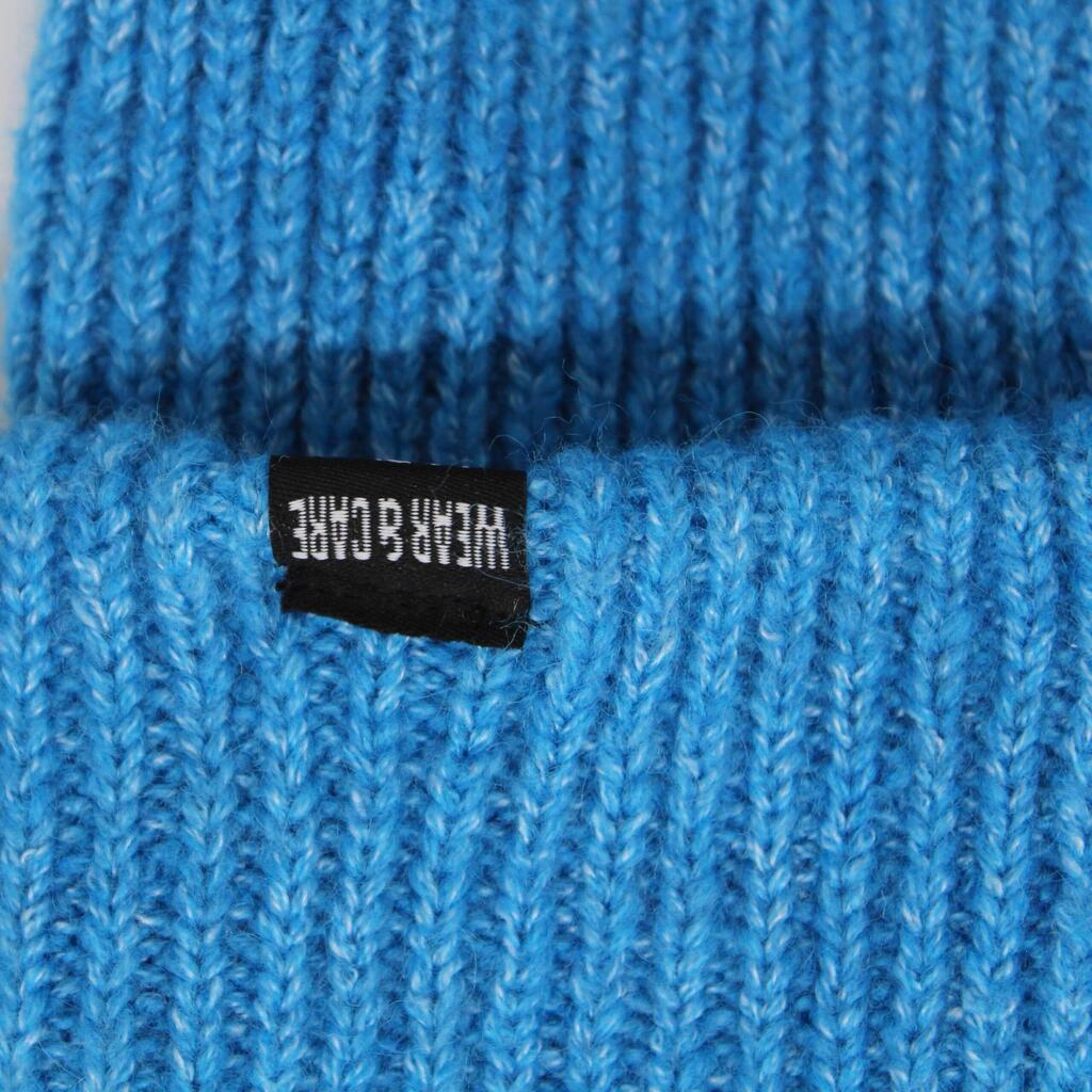 Stretchy ribbed knit fabric. Surf Monkey label sewn on the front. Each beanie recycles two 1.5L post-consumer water bottles.