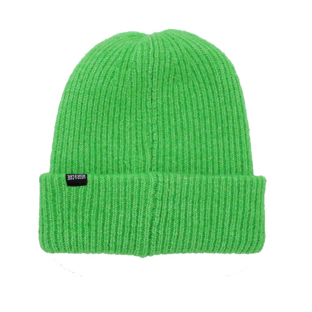 Stretchy ribbed knit fabric. Surf Monkey label sewn on the front. Each beanie recycles two 1.5L post-consumer water bottles.