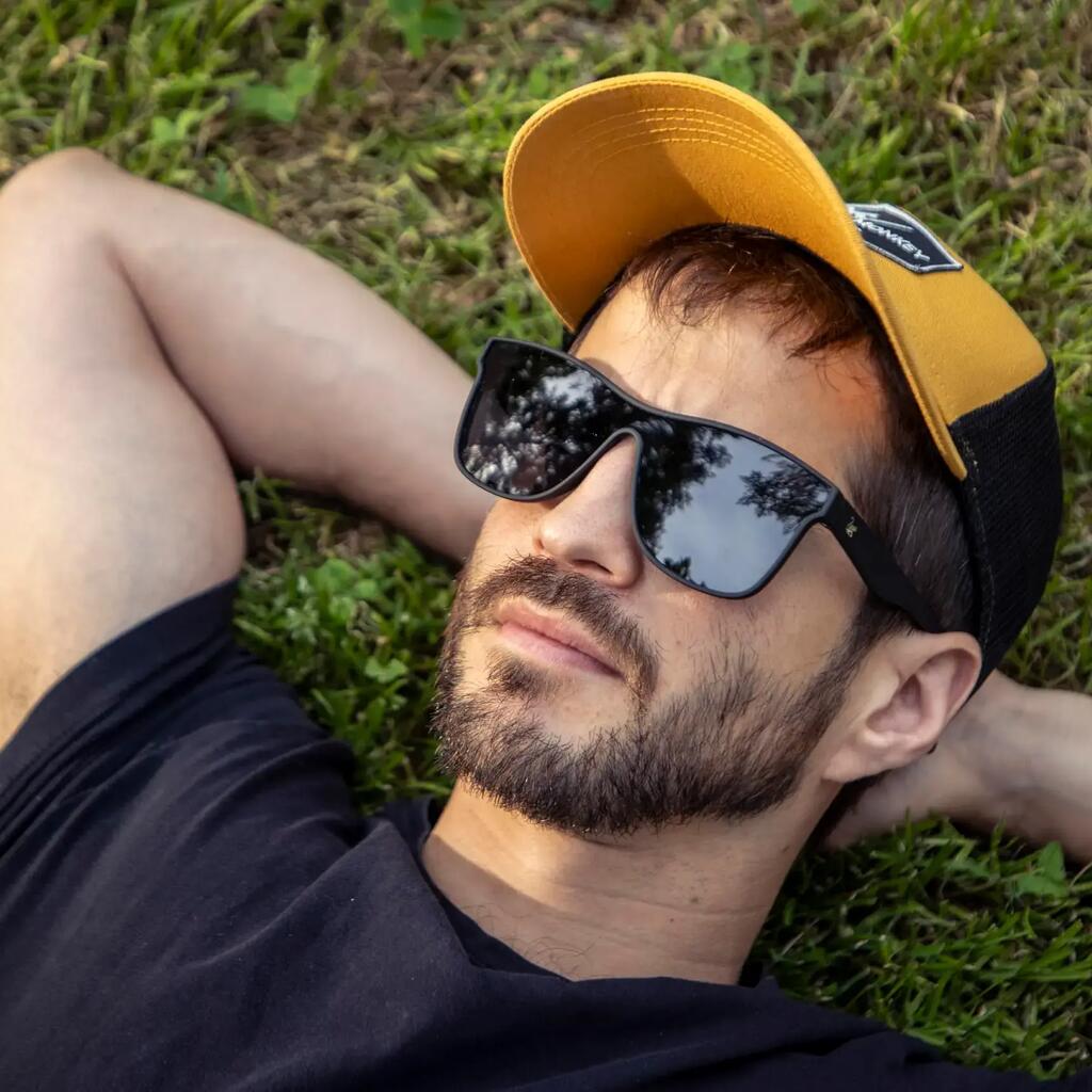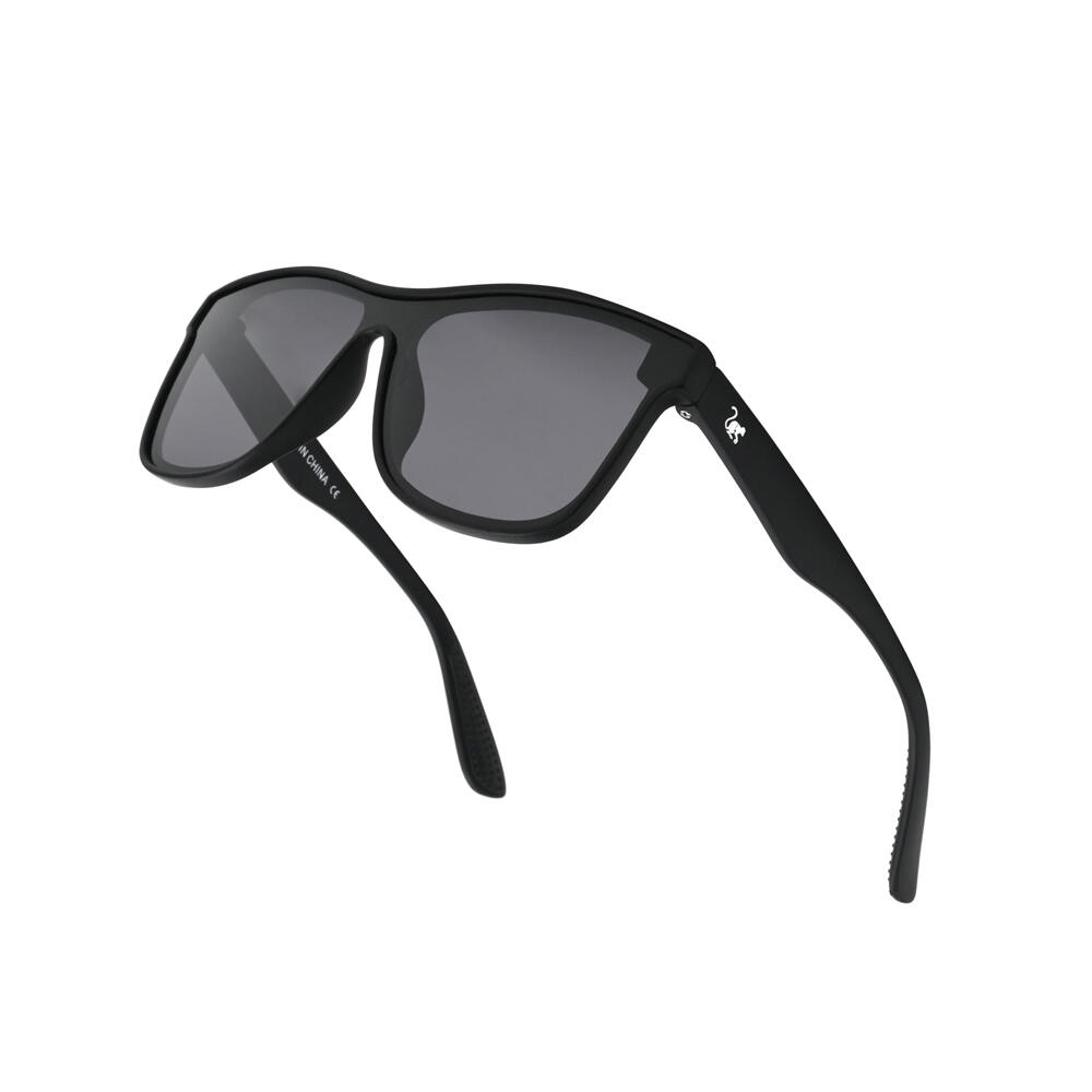 Unisex sunglasses with TAC polarized mirrored lenses and UV400 protection. BPA-free PC frame, lightweight and durable. Includes box, pouch, and manual. Measurements: 14x5 cm, temples 14 cm.