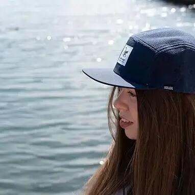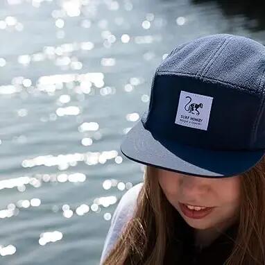 5-panel recycled sherpa cap with waterproof front. Custom fit, embroidered label, and stitched eyelets for breathability. Ideal for outdoor activities and urban look.