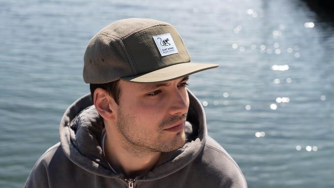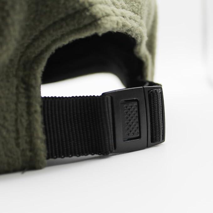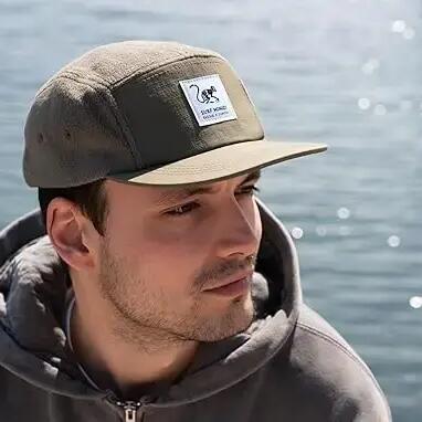 5-panel recycled sherpa cap with waterproof front. Custom fit, embroidered label, and stitched eyelets for breathability. Ideal for outdoor activities and urban look.