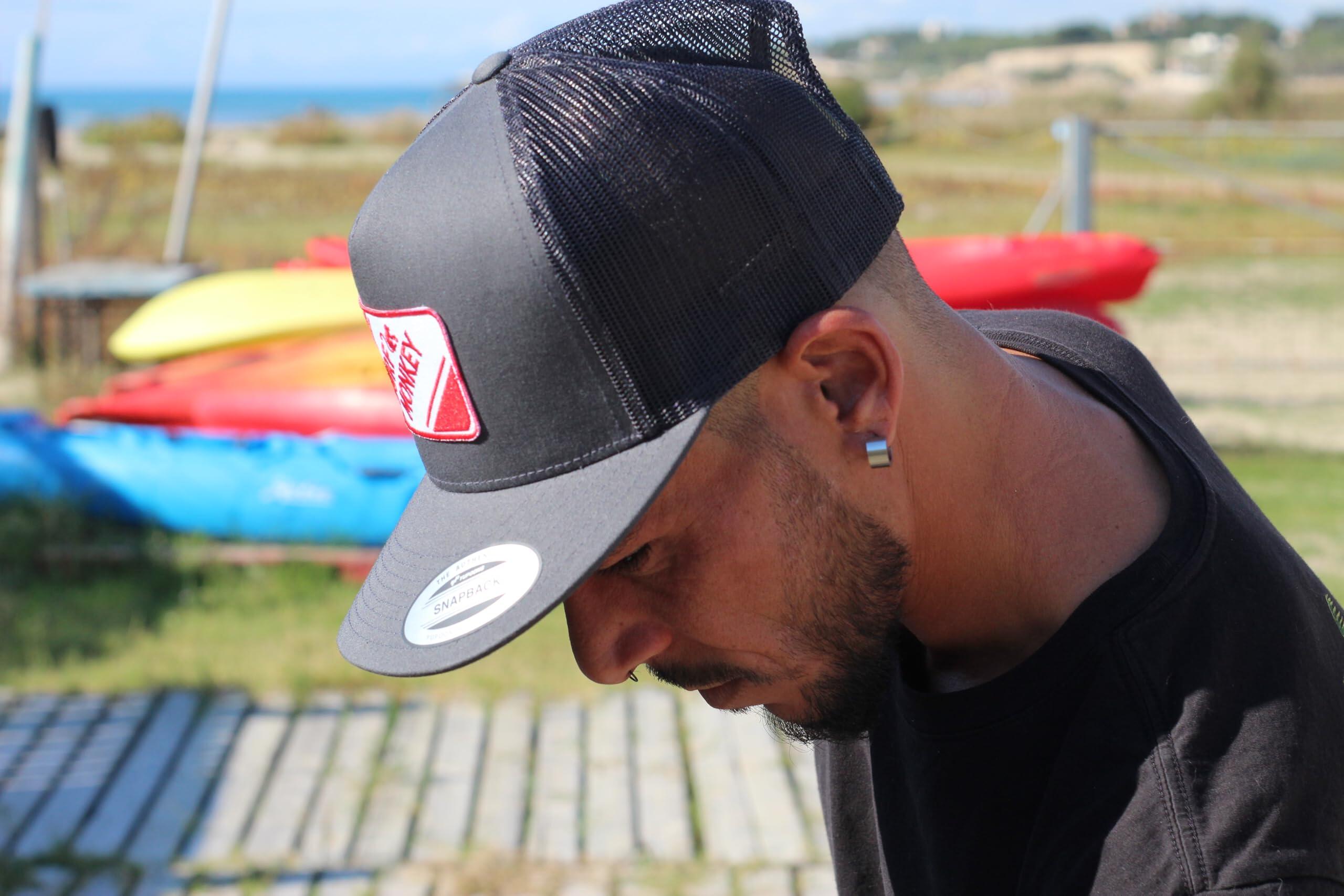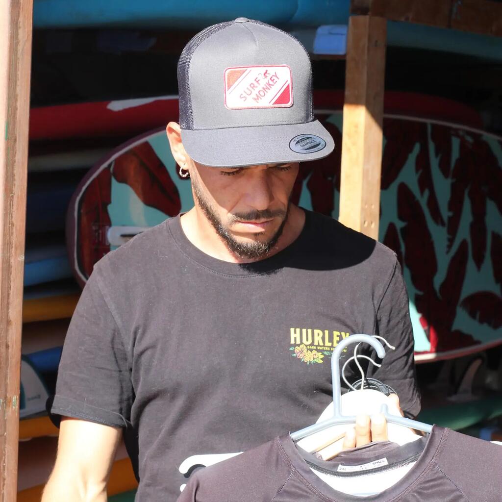Cap with Full Patch / 5-Panel Cap / Flat Brim / Embroidered Surf Monkey Patch / One Size (approx. 56-62 cm) / Brim Length: 7 cm / Crown Height: approx. 11 cm
